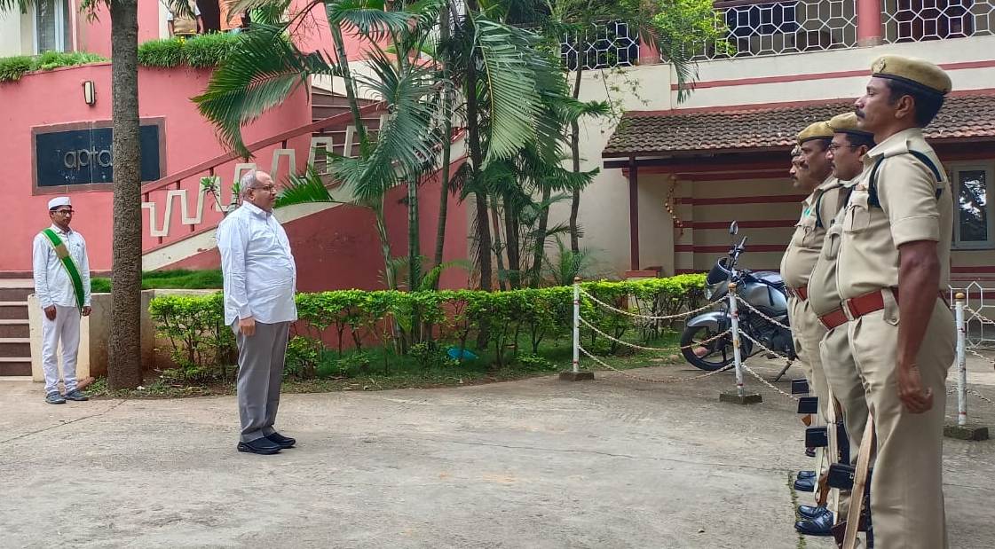 పోలీసుల నుంచి గౌరవ వందనం స్వీకరిస్తున్న హైకోర్టు జడ్జి మన్మధరావు
