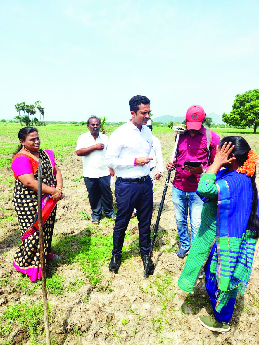 చిలకలూరిపేట: మండల పరిధిలోని గోవిందాపురంలో రీ సర్వే పనుల గురువారం నాడు జిల్లా జాయింట్ కలె క్టర్ శ్యామ్ ప్రసాద్ పరిశీలించారు. రీ సర్వే కార్యక్రమంలో భాగంగా భూముల హద్దురాళ్లు నాటే కార్యక్రమం పనులు ఎట్లా జరుగుతు న్నాయో పరిశీలించి, సంబంధిత రెవెన్యూ శాఖ అధి కారు లతో మాట్లాడారు. ఈ సందర్భంగా ఆయన ఇప్పటి వరకు చేపట్టిన పనుల వివరాలను అడిగి తెలుసు కుని, జరుగు తున్న పనులపై పలు సూచనలు చేశారు. త్వ రితగతిన హద్దురాళ్లు నాటే కార్యక్రమాన్ని పూర్తి చేయాలని సంబం ధిత శాఖల అధికారులకు సూచించారు. ఈ కార్య క్రమంలో చిలకలూరిపేట తహశీల్దార్ సుజాత, మండల సర్వేయర్, సచివాలయ ఉద్యోగులు, సిబ్బంది తదితరులు పాల్గొన్నారు. నాదెండ్ల : జిల్లాలో రీ సర్వే పనులు వేగవంతం చేయాలని జిల్లా జాయింట్ కలెక్టర్ శ్యామ్ ప్రసాద్ ఆదేశించారు. మండలం లో జరుగుతున్న రీ సర్వే పనుల అనంతరం రెవెన్యూ అధికారులు, సర్వేయర్లు, వీఆర్వో నిర్వహిస్తున్న పనులపై జెసి పరిశీలించారు. తుబాడు, ఇర్లపాడు గ్రామాల్లో రెవెన్యూ కేంద్రాల్లో జరుగుతున్న పనులు, రికార్డుల నిర్వహణ, ముటేషన్ పనులు,రీ సర్వే పనులు జరుగుతున్న తీరుపై ఆకస్మిక తనిఖీ చేశారు. విలేజ్ సర్వేయర్లు లాగిన్ లో వస్తున్న సమస్యలు పరిష్కరించేందుకు తీసుకున్న చర్యల గురించి ఆయన అడిగి తెలుసుకున్నారు. వీఆర్ఓ లాగిన్ లోకి వచ్చిన రెవెన్యూ అంశాలకు సంబంధించి చేపడుతున్న చర్యలను అడిగి తెలుసుకొని లబ్ధి దారులకు గ్రామ సభలను ఏర్పాటు చేసి రీ సర్వే విధానాల వల్ల కలిగే ఉపయోగాలను తెలియజేయాలని ఆదేశించారు. ఈ కార్యక్రమంలో పలువురు రెవెన్యూ అధికారులు, సర్వేయర్లు వీఆర్వో లు తదితరులు పాల్గొన్నారు. జగనన్న పాల వెల్లువ కార్యక్రమాన్ని వేగంగా పాడి రైతులకు చేరవేసి మేలు చేయాలని జెసి ఆదేశించారు. నాదెండ్ల మండల పశువైద్య కేంద్రాన్ని ఆయన ఆకస్మిక తనిఖీ చేశారు. విధుల్లో ఉన్న పశువైద్య వైద్య అధికారులు, సిబ్బందితో మాట్లాడి, రికార్డులను పరిశీలించారు. వైద్య సేవలను అందిస్తున్న తీరును అడిగి తెలుసుకున్నారు. జగనన్న పాలవెల్లువ కార్యక్రమ పురోగతిని అడిగి తెలుస కొని, కార్యక్రమాన్ని మరింత ముందుకు తీసుకు వెళ్లాలని సూచించారు.అందుకు సంబంధించిన పరికరాలు, కేంద్రం నిర్వహణ తదితర అంశాలపై అధికారులతో మాట్లాడి పలు సూచనలు చేశారు.