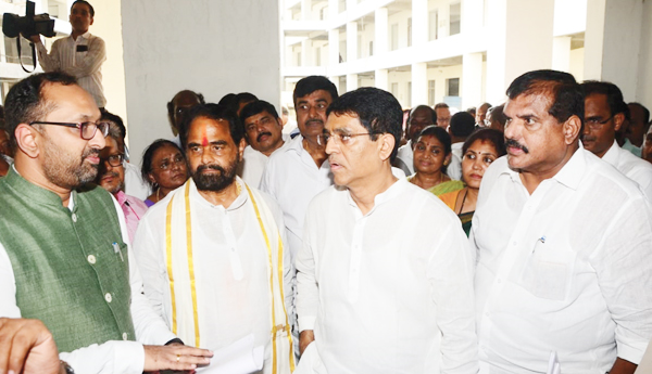ప్రజాశక్తి - శ్రీకాకుళం అర్బన్: ప్రజలకు ఒకేచోట పాలనా సేవలు అందించేందుకు వీలుగా రూపుదిద్దుకున్న ఇంటిగ్రేటెడ్ కలెక్టరేట్ భవన నిర్మాణ పనులను వేగవంతం చేయాలని రాష్ట్ర ఆర్థికశాఖ మంత్రి బుగ్గన రాజేంద్రనాథ్ అధికారులు, కాంట్రాక్టర్ను ఆదేశించారు. నూతనంగా నిర్మిస్తున్న ఇంటిగ్రేటెడ్ కలెక్టరేట్ను శుక్రవారం ఆయన పరిశీలించారు. మూడు లక్షల చదరపు అడుగుల విస్తీర్ణంలో చేపడుతున్న నిర్మాణ పనులు పూర్తి దశకు చేరినట్లు కలెక్టర్ శ్రీకేష్ లాఠకర్ ఆర్థిక మంత్రికి వివరించారు. మౌలిక సదుపాయాల పనుల పూర్తికి మరో ఐదు నెలలు పడుతుందని కాంట్రాక్టర్ తెలిపారు. మొత్తం భవన సముదాయంలో ఆర్థిక మంత్రి కలియ తిరుగుతూ మిగిలిపోయిన పనులకు సంబంధించి ఏ పనులను ఎలా చేయాలో దిశానిర్దేశం చేశారు. ఈ సందర్భంగా ఆయన మాట్లాడుతూ సుమారు రూ.145 కోట్ల వ్యయంతో నిర్మిస్తున్న ఇంటిగ్రేటెడ్ కలెక్టరేట్తో ప్రభుత్వ కార్యాలయాలన్నీ ఒకేచోటకు రానున్నాయని తెలిపారు. పెండింగ్ బిల్లులు అన్నీ పూర్తి చేశామని, త్వరలోనే మిగిలిన స్వల్ప మొత్తాన్ని కూడా విడుదల చేస్తామన్నారు. సీలింగ్, ఫ్లోరింగ్, ఎలక్ట్రికల్ పనులు, ఎసిల ఏర్పాటు వంటి పనులు అనుభవజ్ఞులైన అధికారుల సమక్షంలో జాగ్రత్తగా పూర్తి చేయాలన్నారు. కార్యక్రమంలో శాసనసభ స్పీకర్ తమ్మినేని సీతారాం, మంత్రులు బొత్స సత్యనారాయణ, సీదిరి అప్పలరాజు, జెడ్పి చైర్పర్సన్ పిరియా విజయ, ఆర్థికశాఖ కార్యదర్శి ఎస్.ఎస్ రావత్, ఎమ్మెల్యే ధర్మాన కృష్ణదాస్, జాయింట్ కలెక్టర్ ఎం.నవీన్ తదితరులు పాల్గొన్నారు.