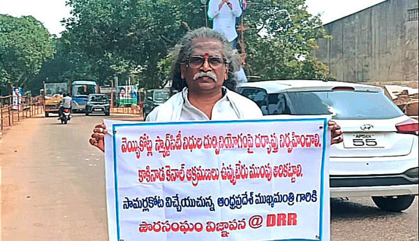 ప్రజాశక్తి-కాకినాడ : బుధవారం రాష్ట్ర ముఖ్యమంత్రి వైఎస్ జగన్ మోహన్ రెడ్డి కాకినాడ జిల్లా సామర్లకోట వస్తున్న సందర్భంగా పౌర సంక్షేమ సంఘం కన్వీనర్ ప్రముఖ సామాజికవేత్త దూసర్లపూడి రమణరాజు కాకినాడ సామర్లకోట రోడ్ లో ఫ్లెక్సీ ప్రదర్శన నిర్వహించారు. సామర్లకోట రోడ్డుకిరు వైపులా కెనాల్స్ పొడవునా ఏర్పడిన భారీ ఆక్రమణలు ఉప్పుటేరు నడుమ మేడలైన్ అక్రమవంతెన సముద్ర పాయలోకి చేరే కాలువ కుచించుకు పోవడం వలన ఎగువ నుండి వస్తున్న గోదావరి వరదల్లో జిల్లా కేంద్రం తీవ్ర ముంపుకు గురై 16 డివిజన్లు 8గ్రామాలు వేల ఎకరాల పంట చేను జల దిగ్బంధనం అవుతున్నాయన్నారు. రెండేళ్ల క్రిందట రాజ్యసభ సభ్యుడు పిల్లి సుభాష్ చంద్రబోస్ ప్రశ్నించినా స్థానిక పౌరులు ఎన్ని విజ్ఞప్తులు చేసినా జిల్లా యంత్రాంగం ఎటువంటి చర్యలు వహించడం లేదన్నారు. జిల్లా కేంద్రం అభివృద్ధికి పౌర సౌకర్యాల పెంపుకు నగరపాలక సంస్థ ఆదాయ ప్రగతికి తావులేకుండా రు.1,000 కోట్ల స్మార్ట్ సిటీ నిధులు తీవ్ర దుర్వినియోగ మయ్యాయన్నారు. ఇదే తీరుగా మురుగు నీరు పారించే ప్రణాళిక లేకుండా జనరల్ నిధులు వృధా చేసి బాగున్న సిసి రోడ్లు మరింత ఎత్తు చేయడం వలన ఇళ్ళు లోగిళ్ళు పల్లమై మురుగు జలమయమవుతున్నాయన్నారు. గత ప్రభుత్వంలో స్మార్ట్ సిటీ నిధులు దుర్వినియోగం అయ్యాయని తాను అధికారంలోకి వస్తే వాటిపై విచారణ చేయిస్తానని 2019లో ఎన్నికల హామీ ప్రకటించిన సిటీ ఎమ్మెల్యే ఎటువంటి చర్యలు వహించక పోగా మరింత దుర్వినియోగానికి వారి వైఖరే కారక మయ్యిందని రమణ రాజు పేర్కొన్నారు. స్మార్ట్ సిటీ నిధులతో పనిచేసిన అధికారులు అవినీతి హవాలాలో కోట్లు సంపాదించుకున్నారని విజిలెన్స్ దర్యాప్తు, ఎసిబి దాడులు లేకుండా అక్రమార్జనకు రాజ మార్గంగా కార్పోరేషన్ పాలన గాడి తప్పిందన్నారు. రాష్ట్ర ప్రభుత్వం ప్రత్యేక చర్యలు వహించి నగర పాలక సంస్థలో పాతుకు పోయిన దుర్వినియోగం అవినీతి అక్రమాలపై ఉన్నత స్థాయి దర్యాప్తు జరపాలని కోరారు. ఎపి ప్రభుత్వ భవనాల ఆస్తిపన్ను కుళాయి పన్ను బకాయిలు అపరాధ రుసుములతో రు.50 కోట్ల మేరకు పెండింగ్ వున్నందున 2023-24 బడ్జెట్ లో ఆయా శాఖల పద్దుల నుండి విడుదల చేయించాలన్నారు. ప్రభుత్వ శాఖలకు స్థానిక ఖజానా నుండి మళ్లించిన సాధారణ నిధులు రూ.20కోట్లు జమ చేయించే చర్యలు వహించాలన్నారు. జిల్లా కేంద్రం ప్రగతికి పరిసర గ్రామాల విలీనం కేసులు తొలగించి గ్రేటర్ కాకినాడ గా అప్ గ్రేడ్ చేయాలని డిమాండ్ చేశారు.
