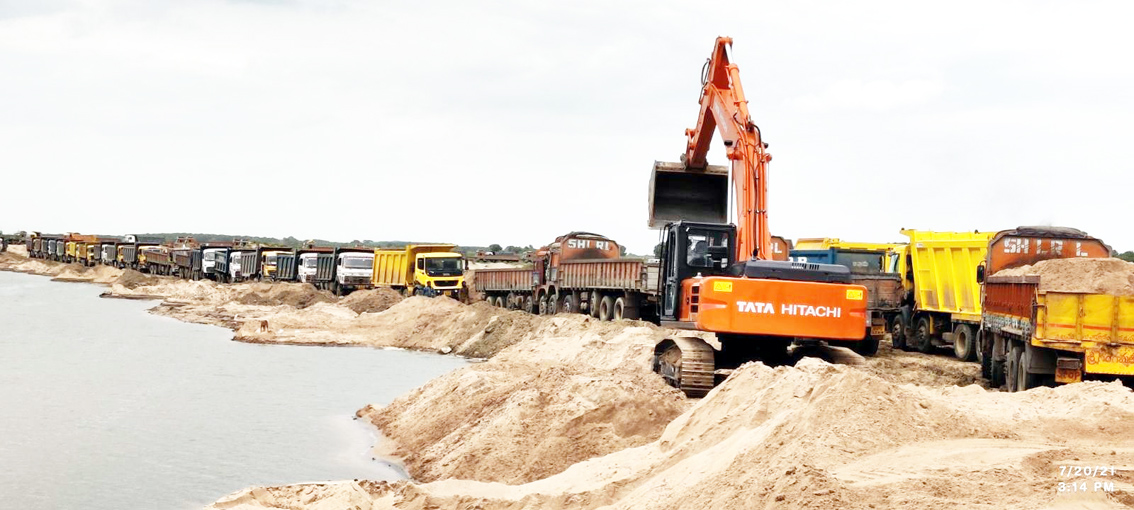 గుంటూరు, పల్నాడు జిల్లాల్లో ఇసుక పంపిణీ ఒక ఫార్సుగా మారింది. జిల్లాలోని నదీ పరివాహక ప్రాంతాల్లో ఉన్న రీచ్ల నుంచి భారీగా ఇసుకను అక్రమంగా తవ్వేస్తున్నారు. ఇసుక తవ్వకం, రవాణా ఛార్జీలతోపాటు ఆయా ప్రాంతాల్లో ఆధిపత్యం వహించే నేతల అనుచరులు ఎక్కువగా ఇసుకను అక్రమ మార్గంలో విక్రయిస్తున్నారు. ఈ విషయంలో అధికార యంత్రాంగం ప్రేక్షకపాత్ర పోషిస్తోంది. నదీ గర్భంలోనే ఇసుకను ప్రొక్లెయినర్ల ద్వారా తవ్వుతున్నారు. పెదకూరపాడు నియోజకవర్గంలోని పలు రీచ్ల నుంచి ఇసుకను తెలంగాణ ప్రాంతానికి అక్రమంగా తరలిస్తున్నారు. ఇసుక లారీల వల్ల పలు గ్రామాల్లో రహదారులు చిధ్రమైపోతున్నా ఏ శాఖ అధికారులు పట్టించుకోవడం లేదు.