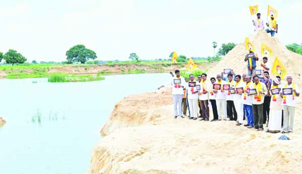 కొల్లూరు: చంద్రబాబు ఆదేశాల మేరకు ఇసుక దోపిడీపై సత్యాగ్రహం పేరుతో కొల్లూరు మండల పరిధిలోని జువ్వలపాలెం చిలుమూరు గ్రామాలలో సోమవారం అక్రమ ఇసుక డంపింగ్ యార్డులను టిడిపి పోలిట్బ్యూరో సభ్యుడు, మాజీ మంత్రి నక్కా ఆనంద బాబు పార్టీ నాయకులు కార్యకర్తలతో కలిసి సందర్శించి నిరసన తెలిపారు. ఈ సందర్భంగా ఆయన మాట్లాడుతూ అక్రమ క్వారీలపై కోర్టు ఆపమని ఆదేశాలు ఇచ్చినా ఇసుక రవాణా చేస్తున్నారని, మే నెలలో జేపీ సంస్థ గడువు పూర్తయినా ఇసుక రవాణా చేస్తున్నారని అన్నారు. ఇసుక తరలింపులకు అనుమతులు చూపాలని ఆయన డిమాండ్ చేశారు. ఈ ప్రభుత్వంపై పోరాటంలో భాగంగా ఈరోజు ఇసుక ర్యాంపులు సందర్శించినట్లు తెలిపారు. వాటాలు తీసుకున్న ఏ ఒక్క అధికారినీ వదిలిపెట్టేది లేదని నక్కా ఆనందబాబు అన్నారు.