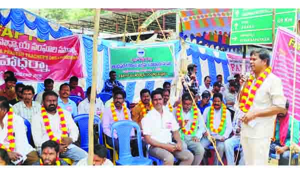 ప్రజాశక్తి-పాడేరుcనివారం సామూహిక నిరసన కార్యక్రమం నిర్వహించాయి. స్థానిక అంబేద్కర్ సెంటర్లో 12 గంటలపాటు చేపట్టిన ఈ నిరసన కార్యక్రమానికి జిల్లాలోని 22 మండలాల నుంచి ఉపాధ్యాయులు పెద్ద ఎత్తున తరలివచ్చారు. గిరిజన సంక్షేమ ఉపాధ్యాయుల సంఘం తరఫున జిల్లా అధ్యక్ష కార్యదర్శులు కే.నీలకంఠం, శోభన్బాబు హాజరై నిరసనకు మద్దతు తెలిపారు. సిపిఎస్, 117 జీవో రద్దు చేయాలని, ఉపాధ్యాయుల పట్ల ప్రిన్సిపల్ సెక్రెటరీ ప్రవీణ్ ప్రకాష్ వైఖరి మారాలని, రెండు నెలలు కిందట నెలలు బదిలీ అయిన ప్రధానోపాధ్యాయులు, ప్రమోషన్లు పొందిన ఉపాధ్యాయులకు వెంటనే జీతాలు మంజూరు చేయాలని ఉపాధ్యాయులు నినాదాలు చేశారు. ఈ సందర్భంగా ఆదివాసి గిరిజన సంఘం రాష్ట్ర నేత పి.అప్పలనరస మాట్లాడుతూ, ఉపాధ్యాయుల పోరాటాలపై రాష్ట్ర ప్రభుత్వం నిర్బంధాలకు పూనుకోవడం సరికాదన్నారు.ఉపాధ్యాయుల పోరాటాలను అణిచివేతకు ప్రభుత్వం ప్రవీణ్ ప్రకాష్ వంటి అధికారులపై ఒత్తిడి చేస్తున్నట్లు తేటతెల్లమవుతోందన్నారు. సిపిఎస్ రద్దు చేస్తామని ఎన్నికల ముందు హామీ ఇచ్చిన ముఖ్యమంత్రి జగన్మోహన్రెడ్డి ఇచ్చిన హామీని తుంగలో తొక్కారని విమర్శించారు. కేంద్ర, రాష్ట్ర ప్రభుత్వాలు కార్పొరేట్ శక్తులకు దాసోహమై ఆదివాసీల హక్కుల్ని కాలరాస్తున్నాయని దుయ్యబట్టారు.గిరిజనులకు నూరు శాతం రిజర్వేషన్ కల్పించే జీవో 3 పునరుద్ధరణకు, నూతన అటవీ చట్టం రద్దు కోసం జరుగుతున్న పోరాటాల్లో ఉద్యోగులు, ఉపాధ్యాయ వర్గాలు భాగస్వాములవ్వాలని పిలుపునిచ్చారు. ఈ సందర్భంగా ఫ్యాప్టో అల్లూరి జిల్లా చైర్మన్ రావుల జగన్మోహన్, ప్రధాన కార్యదర్శి ముఖి రామకృష్ణ, వైస్ చైర్మన్ వెంకటరమణ, జేఏసీ కన్వీనర్ రామారావు దొర, గిరిజన ఉద్యోగుల సంఘం అధ్యక్షుడు ముఖి శేషాద్రి మాట్లాడుతూ, జీవో 117తో విద్యావ్యవస్థ సంక్షోభంలో పడుతుందని ఉపాధ్యాయ సంఘాలు చెబుతున్నా ప్రభుత్వం పట్టించుకోలేదన్నారు.ఉపాధ్యాయులపై కక్ష సాధించే ధోరణిని ప్రభుత్వం విడనాడాలని, ఉపాధ్యాయులపై ఉద్దేశపూర్వకంగా చేస్తున్న దుష్ప్రచారాలను విడనాడాలన్నారు. ఉపాధ్యాయులను కించపరిచే పద్ధతులు సమాజానికి మంచిది కాదని హితవు పలికారు. ఈ కార్యక్రమంలో ఏపీసీపీ ఎస్సిఈఎ జిల్లా అధ్యక్షుడు ఎం.ఈశ్వరరావు, గిరిజన ఉద్యోగుల సంఘం జిల్లా కార్యదర్శి బి.సింహాచలం, జేఏసీ నాయకుడు ఎస్ గంగరాజు, జిల్లాలోని వివిధ మండలాల ఉపాధ్యాయులు, ఆయా సంఘాల నేతలు అధిక సంఖ్యలో పాల్గొన్నారు.
