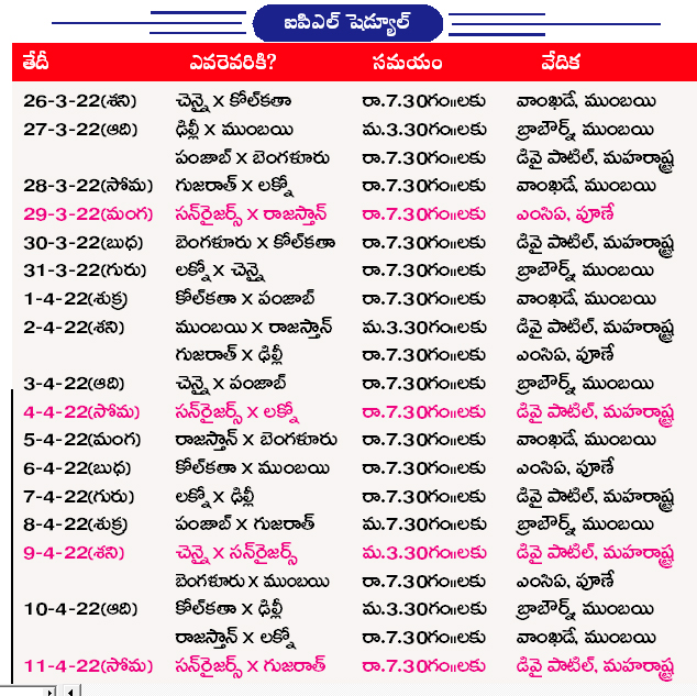 2022 ఐపిఎల్ సీజన్ ఈసారి సరికొత్త ఫార్మాట్లో జరగనుంది. గ్రూప్-ఎలో ముంబయి ఇండియన్స్ (5 టైటిళ్లు), కోల్కతా నైట్రైడర్స్ (2), రాజస్థాన్ రాయల్స్ (1), ఢిల్లీ క్యాపిటల్స్ (0), లక్నో సూపర్ జెయింట్స్ (0) ఉండగా.. గ్రూప్-బిలో చెన్నై సూపర్ కింగ్స్ (4 టైటిళ్లు), సన్రైజర్స్ హైదరాబాద్ (1), రాయల్ ఛాలెంజర్స్ బెంగళూరు (0), పంజాబ్ కింగ్స్ (0), గుజరాత్ టైటాన్స్ (0) జట్లు ఉన్నాయి. దాంతో అత్యధిక టైటిళ్లు నెగ్గి, వేర్వేరు గ్రూపుల్లో ఉన్న ముంబయి, చెన్నై జట్టు ముఖాముఖి రెండుసార్లు తలపడనున్నాయి. గ్రూప్లోని ప్రతి జట్టూ.. అదే గ్రూప్లోని నాలుగు జట్లతో రెండేసి మ్యాచ్లను ఆడనుంది. దాంతో ఎనిమిది మ్యాచ్లు పూర్తవుతాయి. ఇక మిగిలిన ఆరు మ్యాచ్లకుగానూ వేరే గ్రూప్లోని ఐదు జట్లతో ఒక్కో మ్యాచ్ ఆడుతుంది. అప్పుడు ఆ సంఖ్య 13కి చేరుకుంది. ఇక మిగిలిన ఒక మ్యాచ్ని ఆ జట్టుకి సమానస్థాయిలో వేరే గ్రూప్లో ఉన్న జట్టుతో ఆడాల్సి ఉంటుంది. దీంతో 14 మ్యాచ్లు చొప్పున లీగ్ దశలో పూర్తవుతాయి.