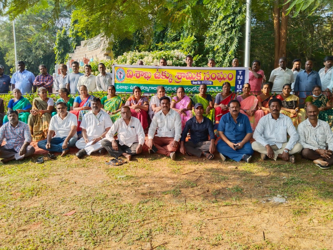 ప్రజాశక్తి-విశాఖపట్నం: కాంట్రాక్టు కార్మికులకు ఉద్యోగ భద్రత కల్పించాలని శ్రామిక సంఘం టిఎన్టియుసి ప్రధాన కార్యదర్శి బొడ్డుపైడిరాజు డిమాండ్ చేశారు. సిఎస్డి యాజమాన్యం 35మంది కార్మికులను తొలగించడాన్ని నిరసిస్తూ, బుధవారం ఏడుగంటల నుంచి తొమ్మిది గంటల వరకు ఉక్కునగరంలోని స్మృత్యంజలి పార్కులో కొవ్వొత్తుల వద్ద బైఠాయించి, మౌన ప్రదర్శన నిర్వహించారు. ఈసందర్భంగా మాట్లాడుతూ, డిపి కార్మికులను తొలగించే చర్యలను వెంటనే ఆపాలని కోరారు. చనిపోయిన కాంట్రాక్టు కార్మికుల స్థానే వారి కుటుంబసభ్యులకు ఉపాధి కల్పించి ఆదుకునే చర్యలను ఉక్కు యాజమాన్యం చేపట్టాలని డిమాండ్ చేశారు. చనిపోయిన కాంట్రాక్టు కార్మికులకు ఫైనల్ బెనిఫిట్స్ చెల్లించే బాధ్యతను ఉక్కుయాజమాన్యం చేపట్టాలని, పెరిగిన వేతనాలకు అనుగుణంగా బకాయిలను చెల్లించాలని డిమాండ్ చేశారు. కార్యక్రమంలో పాండురంగ జయరాజు, కరణం సురేష్కుమార్, కె రాజు, హెచ్ సతీష్, గొందేశి వేణురెడ్డి, కె సోమేష్, జె. జాన్, యన్ వెంకినాయుడు, యు వెంకటరావు, దాసరి సత్యనారాయణ, మస్తాన్, కెఎ.నాయుడు,ధర్మాల నర్సింగరావు, బి.నాగమణి పాల్గొన్నారు.