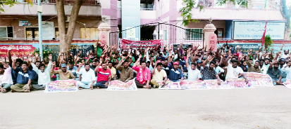 డప అర్బన్ : మున్సిపల్ కార్మికుల సమస్యలను ప్రభుత్వం పరిష్కరించాలని సిఐటియు జిల్లా ప్రధాన కార్యదర్శి మనోహర్ డిమాండ్ చేశారు. మంగళవారం ఏపీ మున్సిపల్ వర్కర్స్ ఎంప్లాయిస్ ఫెడరేషన్ ఆధ్వర్యంలో కార్పొరేషన్ కార్యాలయం ఎదుట నిరసన కార్యక్రమం చేపట్టారు. ఈ సందర్భంగా ఆయన మాట్లాడుతూ కాంట్రాక్ట్, ఆప్కాస్ కార్మికులను రెగ్యులర్ చేయాలని కోరారు. క్లాప్ డ్రైవర్లకు రూ.18,500 వేతనం ఇవ్వాలని పేర్కొన్నారు. కోవిడ్లో తీసుకున్న కార్మికులను అప్కాస్లోకి బదిలీ చేయాలని చెప్పారు. సుప్రీం కోర్టు తీర్పు ప్రకారం కనీస వేతనం రూ.26,000 అమలు చేయాలని డిమాండ్ చేశారు. ఇంజనీరింగ్ కార్మికులకు స్కిల్డ్, సెమిస్కిల్డ్ వేతనాలు అమలు చేయాలని పేర్కొన్నారు. అర్హులైన కార్మికులందరికీ ఇల్లు ఇళ్ల స్థలాలు మంజూరు చేయాలని తెలిపారు. రక్షణ పరికరాలు అందించాలని చెప్పారు. కార్యక్రమంలో సిఐటియు నగర అధ్యక్ష, ప్రధాన కార్యదర్శులు చంద్రారెడ్డి, వెంకటసుబ్బయ్య, ఫెడరేషన్ జిల్లా అధ్యక్షులు తిరుపాల్, ప్రధాన కార్యదర్శి విజయభాస్కర్, కోశాధికారి గోపి, నగర అధ్యక్షులు సుంకర రవి, డివైఎఫ్ఐ నగర కార్యదర్శి ఓబులేసు, నాయకులు ప్రకాష్, శ్రీరామ్, ఆనంద్, దస్తగిరమ్మ, కొండమ్మ, కార్యకర్తలు పాల్గొన్నారు. బద్వేలు : మున్సిపల్ కార్మికుల సమస్యలను పరిష్కరించాలని సిఐటియు జిల్లా కార్యదర్శి కె. నాగేంద్రబాబు డిమాండ్ చేశారు. మున్సిపల్ కార్మికులకు ముఖ్యమంత్రి ఎన్నికల సందర్భంగా ఇచ్చిన హామీలు నెరవేర్చాలని కోరుతూ స్థానిక మున్సిపల్ వర్కర్స్ అండ్ ఎంప్లాయిస్ యూనియన్ పట్టణ కమిటీ ఆధ్వర్యంలో స్థానిక మున్సిపల్ కార్యాలయం వద్ద బైఠాయించారు. తమ సమస్యలను పరిష్కరించడంలో రాష్ట్ర ప్రభుత్వ నిర్లక్ష్యాన్ని విడనాడాలని పెద్ద ఎత్తున నినాదాలు చేశారు. ఈ సందర్భంగా సిఐటియు జిల్లా కార్యదర్శి మాట్లాడుతూ కనీస వేతనం 26 వేలుగా నిర్ణయించి అమలు చేయాలని డిమాండ్ చేశారు. పర్మినెంట్ సిబ్బందికి సిపిఎస్ పెన్షన్ విధానాన్ని రద్దు చేయాలని, సరెండర్ లీవులు, కోవిడ్-19 విపత్తులో పనిచేస్తూ మరణించిన కార్మికుల కుటుంబాలకు రూ. 50 లక్షల ఎక్స్గ్రేషియా చెల్లించాలని పేర్కొన్నారు. ఇప్పటికైనా ప్రభుత్వం స్పందించి కార్మికుల న్యాయమైన డిమాండ్లను పరిష్కారం చేసే దిశగా ముఖ్యమంత్రి జోక్యం చేసుకోవాలని లేనిపక్షంలో రాబోవు రోజులలో రాష్ట్రవ్యాప్త నిరవధిక సమ్మె నిర్వహించవలసి వస్తుందని ప్రభుత్వాన్ని హెచ్చరించారు. కార్యక్రమంలో ఐద్వా మహిళా సంఘం జిల్లా కమిటీ సభ్యురాలు ఎం. గౌతమి, పట్టణ అధ్యక్షురాలు జి. అనంతమ్మ, వడ్డెర వత్తిదారుల సంఘం పట్టణ నాయకులు జి. సుబ్బరాయుడు, మున్సిపల్ యూనియన్ పట్టణ అధ్యక్షుడు పులి శ్యాం ప్రవీణ్, కార్యనిర్వాహక అధ్యక్షుడు దియ్యాలహరి,