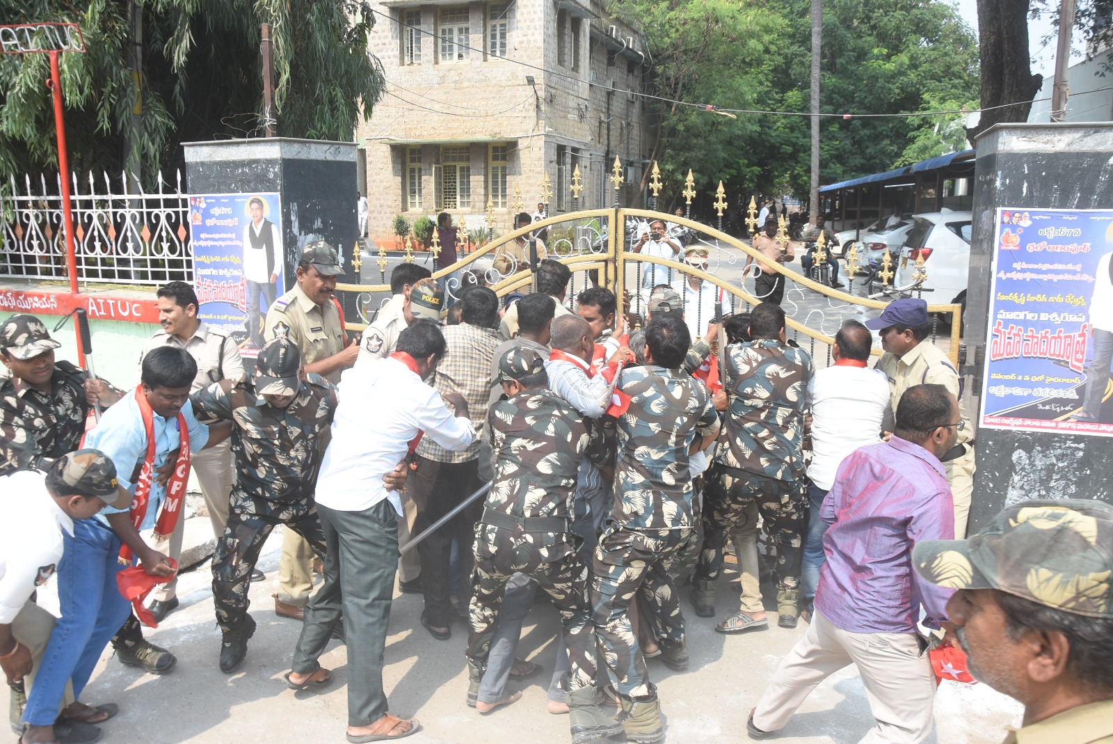 అనంతపురం కార్పొరేషన్ : అనంతపురం నగరంలో నెలకొన్న సమస్యలను పరిష్కరించాలని కోరుతూ సిపిఎం ఒకటవ నగర కమిటీ ఆధ్వర్యంలో బుధవారం నాడు నగరపాలక కౌన్సిల్ సమావేశాన్ని అడ్డుకునే ప్రయత్నం చేశారు. కార్యాలయం వద్దకు సిపిఎం నాయకులు, కార్యకర్తలు చేరుకుని ధర్నాకు దిగారు. కౌన్సిల్ సమావేశాన్ని అడ్డుకునేందుకు కార్యాలయం లోపలికి చొచ్చుకెళ్లేందుకు ప్రయత్నించారు. అప్పటికే అక్కడికి చేరుకున్న పోలీసులు వారిని అడ్డుకున్నారు. కార్యాలయం లోపలికి వెళ్లేందుకు ప్రయత్నిస్తున్న వారిని అడ్డుకుని బలవంతంగా అరెస్టు చేశారు. సిపిఎం నగర నాయకులు ప్రకాష్, వలీ, వెంకటనారాయణ, మసూద్, ముస్కిన్, రాజు, బాలకష్ణ, ఎన్టీఆర్ శీనా, గపూర్, ఎస్కె.మహమ్మద్, ఆటో శివ, నాగరాజు, కుమార్, అమీర్, షర్మాస్, షరీఫ్, లక్ష్మీదేవి పద్మావతి, వరలక్ష్మి, మాబున్నీ, షబానా ఫక్రుని తదితరులను అరెస్టు చేసి వివిధ పోలీసు స్టేషన్లకు తరలించారు. అంతకుముందే సిపిఎం ఒకటవ నగర కార్యదర్శి రామిరెడ్డిని ఇంటి వద్దనే అరెస్టు చేసి మూడో పట్టణ పోలీస్ స్టేషన్కు తరలించారు. కౌన్సిల్ మీట్ ముగిసిన అనంతరం సిపిఎం నాయకులను పోలీసులు విడుదల చేశారు. ఈ సందర్భంగా రామిరెడ్డి మాట్లాడుతూ నగర పాలకవర్గం సమస్యలను పరిష్కరించడంలో పూర్తి స్థాయిలో విఫలం అయ్యిందన్నారు. సమస్యలను పరిష్కరించాలని అడుగుతున్న తమను పోలీసుల ద్వారా అరెస్టు చేయించడం దుర్మార్గం అన్నారు. నగరంలో నెలకొన్న సమస్యలను పరిష్కరించాలని సిపిఎం ఆధ్వర్యంలో పలుమార్లు అధికారులు, పాలకవర్గం దృష్టికి తీసుకెళ్లామన్నారు. అయినా వారి నుంచి ఎలాంటి స్పందనా లేదన్నారు. టవర్క్లాక్ దగ్గర ఉన్న మున్సిపల్ కాంప్లెక్స్ బందెల దొడ్డి కంటే అధ్వానంగా ఉందన్నారు. బాడుగల రూపంలో కోట్లాది రూపాయలు వస్తున్నా దాని అభివృద్ధి కోసం ఎందుకు పట్టించుకోవడం లేదని ప్రశ్నించారు. అనంతపురం నగరం విస్తీర్ణంకు అనుగునంగా కార్మికుల సంఖ్యను పెంచాల్సుందన్నారు. చెత్త పన్నును రద్దు చేసి, ఇళ్ల గుత్తలు తగ్గించాలన్నారు. వీధి కుక్కలు, పందులు, పశువులను వెంటనే అనంతపురం నగరం నుంచి దూరంగా తరలించాలన్నారు. సెంట్రల్ పార్కును కాపాడి సుందరీకరణ చేయాలన్నారు. టిడ్కో ఇళ్లను పూర్తి చేసి వెంటనే లబ్ధిదారులకు ఇవ్వాలని డిమాండ్ చేశారు. పెండింగ్లో ఉన్న నడిమి వంక రక్షణ గోడులు, నడిమి వంక, పెద్ద వంక, మరువ వంక పూడికతీత పనులను చేపట్టాలన్నారు. తిక్క రంగయ్య స్వామి గుడి నుంచి తపోవనంకు వెళ్లే దారిని బాగు చేయాలన్నారు. ఈ సమస్యలను పరిష్కరించకుంటే ఆందోళనను మరింత ఉధృతం చేస్తామని హెచ్చరించారు.