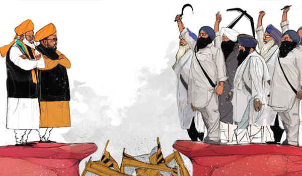 అందుకే ఈ ప్రభుత్వం ఆ చట్టాలలో ఎటువంటి మార్పులు కావాలో చెప్పమని, వాటిపై చర్చిద్దామని అంటోంది. అంటే ఆ చట్టాలు మాత్రం ఉండితీరాలి అని అర్ధం. అందుకే చట్టాలను రద్దు చేసే ప్రసక్తే లేదని ప్రభుత్వం ప్రకటిస్తోంది. చట్టాలు కొనసాగడానికి రైతులు ఒప్పుకుంటే వాటిలో ఎటువంటి మార్పులనైనా ప్రవేశ పెట్టడానికి తాను సిద్ధం అంటోంది ప్రభుత్వం. చట్టాలను కొనసాగించడానికి రైతులు అంగీకరించడం అంటే నయా ఉదారవాద ఎజెండాను వారు అంగీకరించినట్టే. దానిని అంగీకరించడం అంటే చిన్న ఉత్పత్తి రంగం మొత్తం నాశనం కావడాన్ని అంగీకరించినట్టే. అటువంటి వినాశనాన్నే కార్పొరేట్-హిందూత్వ కూటమి కోరుతోంది. అందుకే రైతుల డిమాండ్లను అంత గట్టిగా వ్యతిరేకిస్తోంది. ఇప్పుడు ఈ కూటమి ఎటువంటి చిక్కులో పడిందంటే దాని కళ్ళ ముందే ఆ కూటమి ఆధిపత్యం కరిగిపోనున్నది.