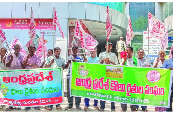 ప్రజాశక్తి-కాకినాడ భూ యజమాని తీసుకున్న అప్పుతో సంబంధం లేకుండా ప్రతి కౌలు రైతుకూ రూ.లక్ష వరకు పంట రుణం ఇవ్వాలని ఎపి కౌలు రైతు సంఘం ఆధ్వర్యంలో కాకినాడ లీడ్ బ్యాంక్ వద్ద శుక్రవారం ధర్నా నిర్వహించారు. ఈ సందర్భంగా జిల్లా కార్యదర్శి వల్లు రాజబాబు మాట్లాడుతూ జిల్లాలో 1,50,000 మంది కౌలు రైతులు ఉన్నప్పటికీ 55 వేల మందికి మాత్రమే కౌలు కార్డులు ఇచ్చారని వీరిలో 30 శాతం మందికి పంట రుణాలు ఇచ్చారన్నారు. రాష్ట్ర ప్రభుత్వం ప్రతి కౌలు రైతుకూ స్కేల్ ఆఫ్ ఫైనాన్స్ ప్రకారం పంట రుణాలు ఇస్తామని నమ్మించి ఇప్పుడు పంట రుణం కోసం బ్యాంకుల వద్దకు పోతే మీరు చేస్తున్న భూమిపై ఇప్పటికే పంట రుణం భూయజమాని తీసుకున్నారని మీకు పంట రుణం రాదని కౌలు రైతులను తిరిగి పంపుతున్నారన్నారు. ఇచ్చిన కొంతమందికైనా రిజర్వు బ్యాంకు గైడ్లైన్స్ ప్రకారం ఒక ఎకరాకు స్కేల్ ఆఫ్ ఫైనాన్స్ ప్రకారం రూ.30,000 మించి ఇవ్వాలని, 5 ఎకరాలు చేస్తున్న రైతుకు రూ.1,50,000 ఇవ్వాన్నారు. కానీ రూ.20 వేల నుంచి రూ.30 వేలు మాత్రమే ఇస్తున్నారన్నారు. సిసిఆర్సి కార్డు లేకపోయినప్పటికీ ఈ క్రాప్ అయితే పంట రుణం ఇస్తామని చెప్పి ఇప్పుడు సిసిఆర్సి తప్పనిసరి అని బ్యాంకు వారు అంటున్నారని ఇలా అయితే కౌలు రైతులకు పంట రుణాలు రావన్నారు. ఈ సమస్య పరిష్కరించాలన్నారు. గతంలో తాళ్ళరేవు యూనియన్ బ్యాంకులో పోలేకుర్రులో ఒకరిద్దరు వ్యక్తులు బ్యాంకు అప్పు ఎగ్గొట్టిన కారణంగా కౌలు రైతులకు పంట రుణాలు ఇవ్వనని చెప్పడం కరెక్ట్ కాదన్నారు.అనంతరం ఎల్డిఎం, ఎజిఎంలను కలిసి వినతిపత్రం ఇచ్చారు. దీనిపై స్పందించిన ఎజిఎం చిన్న బాపనపల్లి రైతులకు పంట రుణాలు ఇస్తామని అంగీకరించారు. ఈ కార్యక్రమంలో ఎపి కౌలు రైతు సంఘం మండల కార్యదర్శి సిహెచ్.సంతోష్, కొంకే సత్యనారాయణ, పెండెం కొండ, బళ్ల భీమారావు, తిరుకోటి కృష్ణ, పంపన నాగేశ్వరరావు, అనుసూరి చిన్న, పెండెం లోవరాజు, పెండెం జాను, పెండం సత్యనారాయణ, తిరుక్కోటి నాని రేవు చిన్నబ్బాయి పాల్గొన్నారు.
