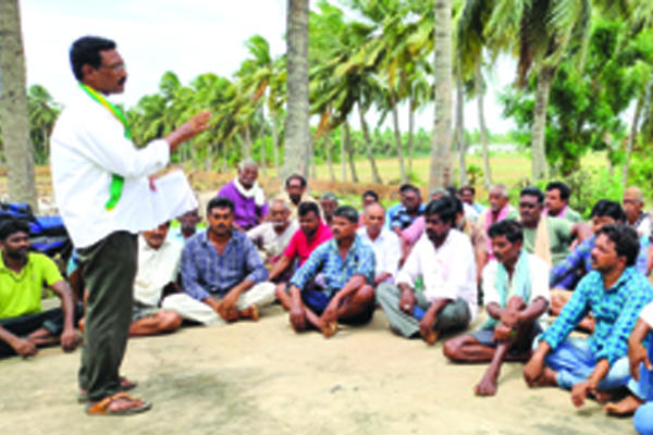 భూ యజమానులు కౌలు(సిసిఆర్సి) కార్డుకు అనుమతిచ్చి ఐదు బస్తాలు కౌలు తగ్గిస్తేనే కౌలు భూమి సాగు చేస్తామని చిన్న బాపనపల్లి, పెద్ద బాపనపల్లి గ్రామ కౌలు రైతులు తీర్మానించారు. సోమవారం ఆంధ్రప్రదేశ్ కౌలు రైతు సంఘం జిల్లా కార్యదర్శి వల్లు రాజబాబు ఆధ్వర్యంలో చిన్న బాపనాపల్లి వద్ద సమావేశం నిర్వహించారు. ఈ సమావేశంలో పలు తీర్మానాలు చేసుకున్నారు. ఒక కౌలు రైతు చేస్తున్న భూమిపై మరొకరు పోటీకి వెళ్లరాదని, కౌలు 5 బస్తాలు తగ్గించాలని, కౌలు కార్డు లేకుండా భూమి చేయరాదని తీర్మానం చేసుకున్నారు. ఈ కార్యక్రమానికి ముఖ్య అతిథిగా హాజరైన ఎపి కౌలు రైతు సంఘం జిల్లా కార్యదర్శి వల్లు రాజబాబు మాట్లాడారు. ఈ కాలంలో రైతాంగాన్ని నష్టపరిచే విధంగా కేంద్ర రాష్ట్ర ప్రభుత్వాల విధానాలు ఉన్నాయన్నారు. కేంద్ర ప్రభుత్వం సబ్సిడీలు కుదించడం వల్ల ఎరువులు, పురుగు మందుల ధరలు విపరీతంగా పెరిగాయన్నారు. పంటలకు మద్దతు ధర లేక నష్టపోతున్నా రన్నారు. ప్రకృతి విపత్తుల వల్ల పంటలను కోల్పోతున్నామన్నారు. కౌలు పెంచడం వల్ల కౌలు రైతులు అప్పుల పాలై ఆత్మహత్యలు పెరుగుతున్నాయన్నారు. పుస్తెలు తాకట్టుపెట్టి సాగుచేస్తున్నా కౌలు రైతులకు కనీసం తిండి గింజలు కూడా మిగలట్లేదన్నారు. ఈ సమస్యలపై పోరాటం చేయాలన్నారు. ప్రభుత్వ పథకాలు కౌలు రైతులకు దక్కితేనే ఆత్మహత్యలు ఆగుతాయన్నారు. రైతులందరూ వ్యవసాయాన్ని శాస్త్రీయంగా చేయాలని తెలిపారు. అనంతరం సంఘం నూతన కమిటీ ఎన్నిక జరిగింది. మాత సుమన్ అధ్యక్షులుగా, దొమ్మేటి మురళీధర్ కార్యదర్శిగా 20 మందితో కమిటీ వేశారు. ఈ కార్యక్రమంలో పంపన నాగేశ్వరరావు, దొమ్మేటి కోటేశ్వరరావు, దడాల వాడపల్లి, దొమ్మేటి జానకి రాముడు, చీకట్ల త్రిమూర్తులు, మేడిశెట్టి సూర్యనారాయణ, వల్లు శ్రీహరిరావు, పి.నూకరాజు, దారా కృష్ణమూర్తి, కౌలు రైతులు పాల్గొన్నారు.