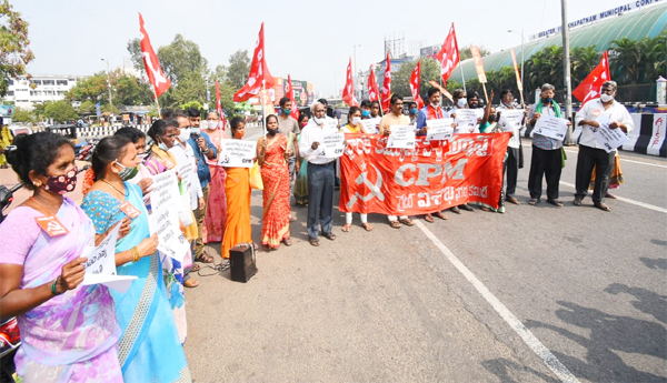 విశాఖ : కేంద్ర ప్రభుత్వం ప్రవేశపెట్టిన బడ్జెట్ కు వ్యతిరేకంగా... సిపిఎం నగర కమిటీ ఆధ్వర్యంలో విశాఖలో బుధవారం నిరసన చేపట్టారు. ఈ కార్యక్రమంలో సిపిఎం నగర కార్యదర్శి ఎం.జగ్గు నాయుడు, సిపిఎం కార్పొరేటర్ 78 వ వార్డు బి.గంగారావు, ఐద్వా నాయకురాలు పి.మణి, మద్దిలపాలెం జోన్ సెక్రటరీ కృష్ణారావు, తదితరులు పాల్గొన్నారు.