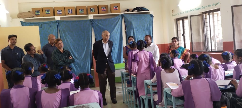 ప్రజాశక్తి -భీమునిపట్నం : నీతి అయోగ్లో భాగంగా స్థానిక కెజిబివిని జర్మన్ ప్రతినిధుల బృందం సోమవారం సందర్శించింది. జిల్లా విద్యాశాఖాధికారి ఎల్ చంద్రకళ, సమగ్రశిక్ష అడిషనల్ ప్రోగ్రామ్ కోఆర్డినేటర్ జి.శ్రీనివాసరావు, ఎంఇఒ బాలామణి, డైట్ ప్రిన్సిపాల్ మాణిక్యంనాయుడుతో కలిసి కస్తూర్బా పాఠశాలను సందర్శించిన జర్మన్ బృందం, విద్యార్థులకు పలు ప్రశ్నలు అడిగి, వారి సామర్ధ్యాన్ని పరిశీలించి అంచనా వేశారు. విద్యార్థుల సమాధానాల పట్ల సంతృప్తి చెందారు. రాష్ట్రస్థాయి టెన్నిస్బాల్ క్రికెట్ టోర్నమెంట్లో ఇటీవల అద్భుతమైన ప్రతిభ కనబరిచిన విద్యార్థినులను అభినందించారు. స్టోర్రూమ్, వంటగది, లైబ్రరీ, లేబొరేటరీ, ఈ-ప్లస్ క్లబ్ను పరిశీలించిన జర్మన్ ప్రతినిధుల బృందం కస్తూర్బా పాఠశాలలోని పరిస్థితులు, సౌకర్యాలపై సంతృప్తి వ్యక్తం చేశారు. కార్యక్రమంలో ఎస్ఒ గంగాకుమారి, అధ్యాపకులు, బోధనేతర సిబ్బందితో పలు అంశాలపై జర్మన్ ప్రతినిధుల బృందం చర్చించింది. జర్మన్ ప్రతినిధుల బృందంలో ఇండియన్ అంబాసిడర్ టు జర్మనీ పి.హరీష్, ఇండియన్ అంబాసిడర్ టు నార్వే బి.బాలభాస్కర్ ఉన్నారు.