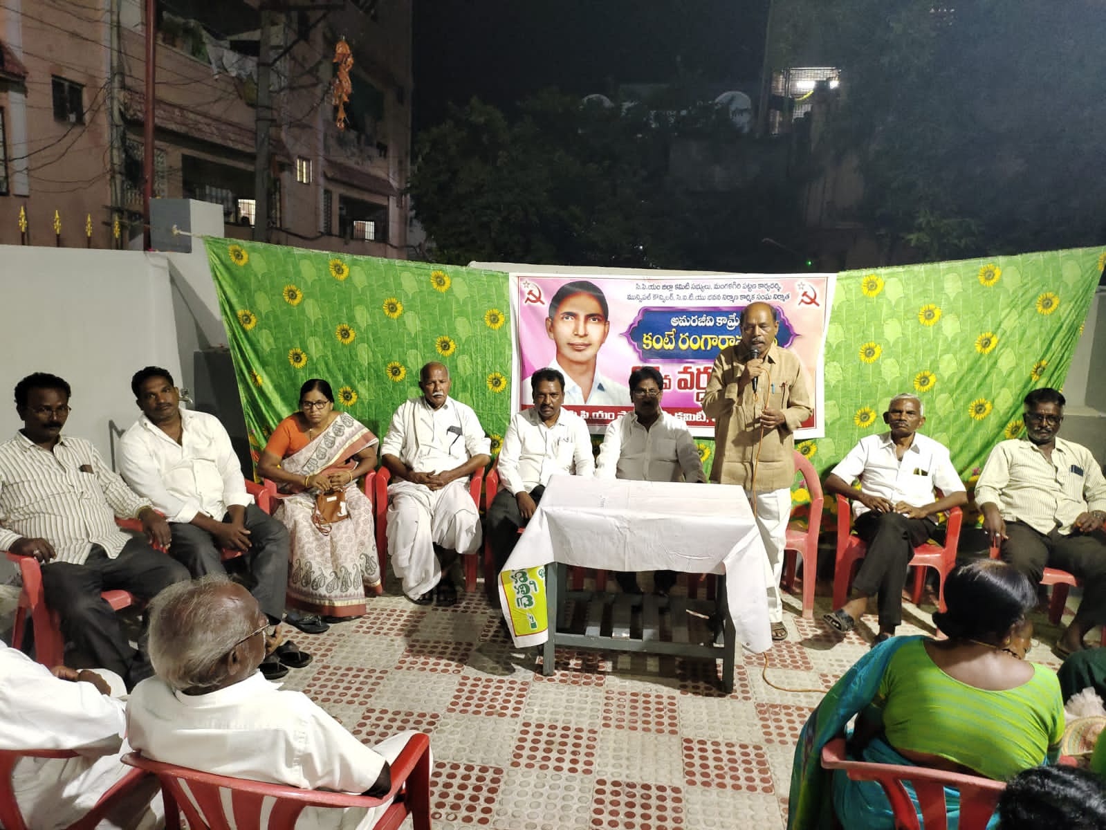 ప్రజాశక్తి-మంగళగిరి : కంటే రంగారావు ఆశయాలను ముందుకు తీసుకెళ్లడానికి కృషి చేయాలని సిపిఎం సీనియర్ నాయకులు జెవి రాఘవులు అన్నారు. సిపిఎం నాయకులు, మాజీ కౌన్సిలర్ కంటే రంగారావు 37వ వర్ధంతి సభ స్థానిక ఆ పార్టీ కార్యాలయంలో గురువారం నిర్వహి ంచారు. సభకు సిపిఎం పట్టణ కార్యదర్శి వర్గ సభ్యులు వివి జవహర్లాల్ అధ్యక్ష వహించారు. రాఘవులు మాట్లాడుతూ కంటే రంగారావు మంగళగిరి పట్టణ పరిసర ప్రాంతాల్లో పేద ప్రజలు ఎదుర్కొ ంటున్న సమస్యల పరిష్కారం కొరకు నిరంతరం పని చేశారన్నారు. పట్టణంలో అనేక పేదల కాలనీల నిర్మాణంలో ఆయన చేసిన కృషి మరువలేనిదని చెప్పారు. భనిర్మాణ కార్మిక సంఘాన్ని నిర్మించి వారి సమస్యల పరిష్కారం కొరకు నిరంతరం పని చేశరన్నారు. ప్రస్తుతం దేశంలో, రాష్ట్రంలో ఉన్న పాలకుల విధానాలు ప్రజా వ్యతిరేకంగా ఉన్నాయని, వీటికి వ్యతిరే కంగా ప్రజా ఉద్యమాలను ఉధృతం చేయడమే కంటే రంగారావుకు ఘనమైన నివాళి అని చెప్పారు. దేశంలోని మోడీ ప్రభుత్వం అవలంబిస్తున్న విధానాల వల్ల పేదలు మరింత పేదలుగా మారిపోతు న్నారని, అదే విధానాలను రాష్ట్రంలోని ప్రభుత్వమూ అమలు చేస్తోందని విమర్శి ంచారు. వచ్చే పార్లమెంట్ ఎన్నికల్లో దేశవ్యా ప్తంగా బిజెపిని ఓడించాలని పిలుపుని చ్చారు. సిపిఎం గుంటూరు జిల్లా కార్యదర్శి వర్గ సభ్యులు ఎస్ఎస్ చెంగయ్య మాట్లా డుతూ కంటే రంగారావు మంగళగిరి పట్టణంలో అనేక ప్రాంతాల్లో పేదలతో ఇళ్ల్లను వేయించి కాలనీలను ఏర్పాటు చేశారని గుర్తు చేశారు. సభలో సిపిఎం పట్టణ కార్యదర్శి వై.కమలాకర్, సీనియర్ నాయకులు పి.బాలకృష్ణ, తాడేపల్లి మండలం కార్యదర్శి డి.వెంకట్రెడ్డి, నాయ కులు బి.కోటేశ్వరి, ఎం.బాలాజీ, జానీబాషా, టి.శ్రీనివాసరావు, కంటే రంగారావు కుటుంబ సభ్యులు పాల్గొన్నారు. తొలుత సిపిఎం పతాకాన్ని జెవి రాఘవులు ఆవిష్కరించగా రంగారావు చిత్రపటానికి చెంగయ్య, అమరవీరుల స్తూపానికి వివి జవహర్లాల్ పూలమాలలు వేశారు.