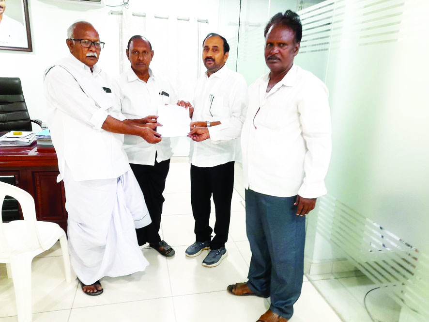 నిడమర్రులోని ఎస్సీ కాలనీలో కమ్యూనిటీ హాల్ నిర్మించాలని, ఏఏ ప్రాథమిక పాఠశాలలో మెరక తోలాలని, కర్మకాండలకు షెడ్ నిర్మాణం చేయాలని కోరుతూ ఎమ్మెల్యే ఆళ్ల రామకృష్ణారెడ్డికి ప్రజాసంఘాల నాయకులు వినతి పత్రం అందజేశారు. మంగళగిరిలోని ఎమ్మెల్యే కార్యాల యంలో ఆయనను కలిశారు. ఎమ్మెల్యే స్పందించి డి ఇతో మాట్లాడి వెంటనే హాల్, షెడ్ నిర్మాణాలకు అంచ నాలు తయారు చేస్తానని చెప్పారు. అర్జీ అందజేసిన వారిలో సిఐట ియు నాయకులు ఎం.రవి, ఎం.భాగ్యరాజ్, స్థానిక పెద్దలు కె.నాగేశ్వరరావు, కె.వీరయ్య, కె.కళ్యాణ్, కె.అశోక్ ఉన్నారు.