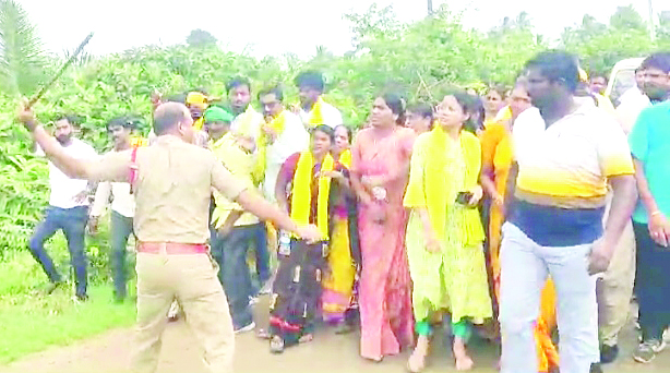 చంద్రబాబు అరెస్టును నిరసిస్తూ టిడిపి, జనసేన ఆధ్వర్యంలో ద్వారకాతిరుమల చినవెంకన్న ఆలయానికి చేపట్టిన పాదయాత్రను పోలీసులు అడ్డుకోవడంతో వాగ్వివాదం చోటుచేసుకుంది. మండలంలోని మారంపల్లి నుండి శుక్రవారం ఉదయం జనసేన, టిడిపి నాయకులు, కార్యకర్తలు పాదయాత్రగా ద్వారకాతిరుమల శ్రీవారి ఆలయానికి బయలుదేరారు. టిడిపి మండల అధ్యక్షులు సత్తిపండు, జనసేన మండల అధ్యక్షులు దాకారపు నరసింహమూర్తి నేతృత్వంలో నాయకులు, కార్యకర్తలు, మహిళలు అధికసంఖ్యలో ఈ పాదయాత్రలో పాల్గొన్నారు. ఈ యాత్ర తిరుమలంపాలెం వద్దకు రాగానే పోలీసులు అడ్డుకుని, పోలీస్ వాహనం, తాళ్లు అడ్డుపెట్టి అడ్డుకున్నారు. దీంతో అక్కడ ఉద్రిక్త పరిస్థితులు నెలకొన్నాయి. శాంతియుతంగా పాదయాత్ర చేస్తున్న తమను అడ్డుకోవడం దారుణమని నాయకులు ఆగ్రహం వ్యక్తం చేశారు. ఈ క్రమంలో నాయకులను అరెస్టు చేసేందుకు పోలీసులు యత్నించారు. ఈ క్రమంలో టిడిపి నాయకులకు, పోలీసులకు మధ్య తీవ్రవాగ్వివాదం, తోపులాటలు జరిగాయి. అనంతరం పోలీసులను తోసుకుంటూ మహిళలు, నాయకులు, కార్యకర్తలు ముందుకుసాగారు. ద్వారకాతిరుమల చేరుకుని తొలుత అంబేద్కర్ విగ్రహానికి పూలమాల వేసి జగన్కు వ్యతిరేకంగా నినాదాలు చేశారు. అనంతరం శ్రీవారి పాదాల వద్ద కొబ్బరికాయలు కొట్టి చంద్రబాబుకు బెయిల్ రావాలంటూ పూజలు నిర్వహించారు. ఈ కార్యక్రమంలో ఇరు పార్టీల నాయకులు, కార్యకర్తలు, మహిళలు అధిక సంఖ్యలో పాల్గొన్నారు.