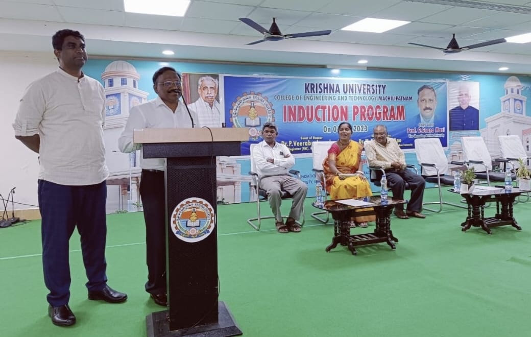 ప్రజాశక్తి-మచిలీపట్నం రూరల్ : కృష్ణా విశ్వ విద్యాలయం ఇంజ నీరింగ్ కళాశాల ఆధ్వర్యంలో మొదటి సంవత్సరం చదువుచున్న ఇంజనీరింగ్ ప్రెషర్స్ డే ప్రోగ్రామ్ నిర్వ హించారు. ఈ కార్యక్ర మానికి ముఖ్య అతిధిగా విచ్చేసిన, విశ్వవిద్యాలయ ఉపకులపతి జి.జ్ఞానమణి మాట్లాడుతూ విద్యార్థులు క్రమశిక్షణలో, అంకిత భావంతో చదువుకోవాలని నిర్దేశించారు. విద్యార్థులకు కావాల్సిన అన్ని సదుపాయలను విశ్వ విద్యాలయాలకు అధికారులు సమకూ ర్చుతారని అభయ మిచ్చారు. రిజిస్ట్రార్ పి. బ్రహ్మచారి మాట్లాడుతూ విద్యార్థులు వారికి నిర్దేశించిన విధి, విధాలను క్షుణ్ణంగా తెలుసుకోవాలని, తదనుగుణంగా బాగా చదువుకొని వద్దిలోనికి రావాలని ఉపదేశించారు. ప్రిన్సిపాల్ డా ఆర్.విజయ కుమారి మాట్లాడుతూ విశ్వవిద్యాలయం అందిస్తున్న సౌకర్యాల న్నిటిని గ్రంథాలయాలు, ల్యాబలే టరీలు ఇండోర్ స్టేడియం, ఆట స్థలాలు వంటివాట్ని ఉపయోగించుకొని విద్యార్థులు చక్కగా విద్యనభ్యసించి, అన్ని విధాల వద్దిలోనికి రావాలని ఆకాంక్షించారు. ఈ కార్యక్రమంలో భాగంగా లక్ష్యసాధనకు వ్యక్తిగత ప్రేరణ మరియు ఏర్పాటు అనే అశం గురించి ఆంగ్ల ఆచార్యులు మరియు వైస్ ప్రిన్సిపాల్, ఆర్ట్స్అండ్ సైన్స్ ఎమ్. కోటేశ్వరరావు ప్రసంగించారు. ఆర్ట్స్ట్ అండ్ సైన్స్ కళాశాల ప్రన్సిపాల్ వై కే సుందర కష్ణ మారుతున్న టెక్నాలజీ అందిపుచ్చుకుని విద్యార్థులు భవిష్యత్తుకు బాటలు వేసుకోవానికి కోరారు ఈ సందర్భంగా ప్రొఫెసర్ కోటేశ్వరావు ను సత్కరించారు.