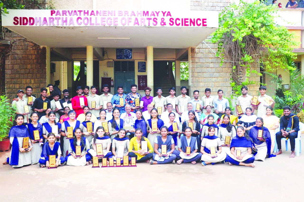 ప్రజాశక్తి-విజయవాడ అర్బన్: కష్ణా విశ్వవిద్యాలయం ఆధ్వర్యంలో డిసెంబర్ 9, 10 తేదీల్లో కష్ణా తరంగ్- 2022 పేరుతో నిర్వహించిన అంతర్ కళాశాలల యువజనోత్సవాల్లో పర్వతనేని బ్రహ్మయ్య సిద్ధార్థ ఆర్ట్స్ అండ్ సైన్స్ కళాశాల విద్యార్థులు ఓవరాల్ ఛాంపియన్షిప్ సాధించినట్లు కళాశాల ప్రిన్సిపాల్ డాక్టర్ మేకా రమేష్ తెలియజేశారు. ఈ పోటీలలో భాగంగా సాంస్కతిక, సాహిత్య, రంగస్థల, లలిత కళలకు సంబంధించిన 27 అంశాలలో పోటీలు నిర్వహించగా మొత్తం 23 పోటీలలో తమ కళాశాల విద్యార్థినీ విద్యార్థులు బహుమతులు సాధించినట్లు కళాశాల డైరెక్టర్ వేమూరి బాబురావు వెల్లడించారు. కర్నాటిక్/ హిందూస్థానీ గాత్ర సంగీతం, సంప్రదాయ వాయిద్య పరికరాలు, లలిత సంగీతం, శాస్త్రీయ నత్యం, ధ్వన్యనుకరణ( మిమిక్రీ), వ్యంగ్య చిత్రాలు, ప్రహేళిక (క్విజ్), భారతీయ బందగానం, జానపద వాద్య పరికరాలు వంటి పది పోటీల్లో ప్రథమ బహుమతులు, పాశ్చాత్య వాద్య పరికరాలు, చిత్రలేఖనం, పోస్టర్ రూపకల్పన, మట్టితో ఆకతుల తయారీ, చర్చా వేదిక, వ్యర్థ పదార్థాలతో అందమైన ఆకతుల రూపకల్పన, మూకాభినయం, లఘు నాటిక, పాశ్చాత్య బందగానం వంటి 9 పోటీల్లో ద్వితీయ బహుమతులు, కొలేజ్, ముగ్గుల పోటీలు, మెహేంది, నాటకం పోటీలలో తతీయ బహుమతి సాధించినట్లు వెల్లడించారు. వరుసగా నాలుగో సంవత్సరం కష్ణా తరంగ్ ఓవరాల్ ఛాంపియన్షిప్ సాధించటం తమ కళాశాలకు గర్వకారణమని సిద్ధార్థ అకాడమీ కార్యదర్శి పాలడుగు లక్ష్మణరావు, సహకార్యదర్శి నిమ్మగడ్డ లలిత ప్రసాద్, కళాశాల కన్వీనర్ సూరెడ్డి వెంకటేశ్వరరావు కొనియాడారు. ఈ ప్రతిష్టాత్మక విజయం వెనుక తమ కళాశాల సాంస్కతిక విభాగం అధ్యాపకులు డాక్టర్ బి జయప్రకాష్, కే శివరంజని, జి నాగశశాంక, సాహిత్య విభాగం అధ్యాపకులు డాక్టర్ శాంత్ కుమారి, ఏ కవిత, ఎస్ కనకదుర్గల కృషిని కళాశాల డీన్ ప్రొఫెసర్ రాజేష్ జంపాల అభినందించారు.