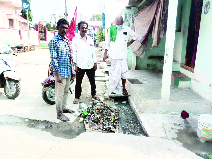 తాడేపల్లి రూరల్: ఎంటీఎంసీ పరిధిలోని కుంచనపల్లి దళితవాడలో పారిశుద్ధ్యం మెరుగుపరచ డంలో అధికారులు విఫలమయ్యారు. రోజు ల తరబడి డ్రైనేజీ కాలువలో చెత్తాచెదారం పేరుకుపోయి, మురుగునీరు పోయే దారి లేక డ్రైనేజీ కాలువ దుర్గంధం వెదజలు ్లతోంది. కాలువ పూడిక తీసారే కాని, చెత్త కుప్పలను తీయకుండా నిర్లక్ష్యం చేశారు. కుంచనపల్లి దళితవాడ ప్రధాన రహదారి వద్ద చెత్తకుప్పల దుర్గంధం వెద జల్లుతూ, పురుగులు ఇంట్లోకి వస్తున్నాయి. మన వైపు దోమల బెడదతో బెంబేలెత్తు తున్న పట్టించుకునే నాధుడే లేడంటూ పలువురు స్థానికులు వాపోతున్నారు. గురువారం సిపిఎం నాయకులు ప్రచార భేరి కార్యక్రమం దళితవాడలో నిర్వహిస్తుం డగా, 'మా దళిత వాడలో డ్రైనేజీ కాలువలు శుభ్రం చేయడం లేదు' అంటూ సిపిఎం తాడేపల్లి మండల కార్యదర్శి దొంతిరెడ్డి వెంకటరెడ్డి వద్ద స్థాని కులు వాపోయారు. ఈ సందర్భంగా వెం కటరెడ్డి మాట్లాడుతూ మున్సిపల్ అధికారులు పారి శుద్ధ్యం మెరుగుపరచడంలో నిర్లక్ష్యం వహించరాదని, ప్రజల ఆరోగ్యాన్ని కాb ాడాలన్నారు. రోజుల తరబడి డ్రైనేజీ కాలువలు శుభ్రం పూడిక తీయకపోతే దోమలు ప్రబలి ప్రజలు అనారోగ్యానికి గురవుతారని అన్నారు. ఎప్పటికప్పుడు డ్రైనేజీ కాలవలను పూడిక తీయించి చెత్త కుప్పలను ఎత్తి, శుభ్రం చేయాలన్నారు. తక్ష ణమే సంబంధిత మున్సిపల్ అధికారులు స్పందించి, కుంచనపల్లి దళితవాడలో పారి శుద్ధ్యం మెరుగు పరచాలని, డ్రైనేజీ కాలు వలు శుభ్రం చేయాలని, అధికారులను ఆయన డిమాండ్ చేశారు. కార్యక్రమంలో సిపిఎం తాడేపల్లి మండల నాయకులు పల్లె కృష్ణ, అమ్మిశెట్టి రామారావు పాల్గొన్నారు.