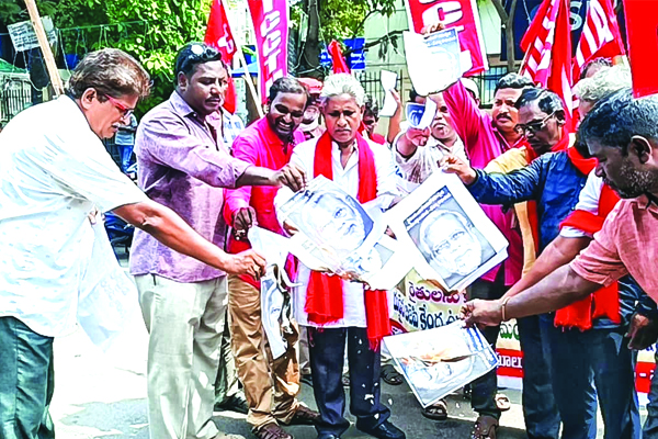 ప్రజాశక్తి-కాకినాడ 2021 అక్టోబర్ 3న లఖింపూర్ఖేరీ రైతాంగ ప్రదర్శనలో నలుగురి రైతులను కాన్వారు వాహనాలతో తొక్కించి చంపిన బిజెపి మంత్రి అజరు మిశ్రా, అతని కుమారుడైన ఆశిష్ మిశ్రాలను పదవుల నుంచి తొలగించాలని, వారిని కఠినంగా శిక్షించాలని పలువురు డిమాండ్ చేశారు. కేంద్ర కార్మిక సంఘాలు, రైతు, కౌలు రైతు, వ్యవసాయ కార్మిక సంఘాల జిల్లా కమిటీల ఆధ్వర్యంలో స్థానిక మెయిన్ రోడ్డులో మంగళవారం ఎస్బిఐ బ్రాంచిలో బ్లాక్ డే నిర్వహించారు. నిందితుల కొమ్ముకాస్తున్న మోడీ చిత్రపటాలను ధగం చేశారు. ఈ సందర్భంగా రైతు సంఘం జిల్లా అధ్యక్షుడు తిరుమలశెట్టి నాగేశ్వరరావు, కౌలురైతు సంఘం జిల్లా ప్రధాన కార్యదర్శి వల్లు రాజబాబు, వ్యవసాయ కార్మిక సంఘం జిల్లా అధ్యక్షుడు పప్పు ఆదినారాయణ, ఎఐసిసిటియు రాష్ట్ర కన్వీనర్ గొడుగు సత్యనారాయణ, వ్యవసాయ కార్మిక సంఘం జిల్లా ప్రధాన కార్యదర్శి టేకుమూడి ఈశ్వరరావు మాట్లాడారు. సంఘటన జరిగి నేటికీ రెండేళ్లు పూర్తవుతున్నా మోడీ ప్రభుత్వం నిందితులైన బిజెపి నాయకులపై చర్యలు తీసుకోకుండా చనిపోయిన రైతు కుటుంబాలకు అన్యాయం చేస్తోందని విమర్శించారు. రైతుల పోరాటానికి తలవంచి మూడు నల్ల చట్టాలను రద్దు చేస్తున్న సందర్భంగా దేశ రైతాంగానికి క్షమాపణలు చెబుతూ నిందితులను కఠినంగా శిక్షిస్తామని, పదవుల నుంచి తొలగిస్తామని చెప్పిన మాటలు కేవలం కంటి తుడుపుకు మాత్రమేనని తెలిపారు. ఈ కార్యక్రమంలో ఎఐటియుసి జిల్లా ప్రధాన కార్యదర్శి తోకల ప్రసాద్, సిపిఐ జిల్లా ప్రధాన కార్యదర్శి కామిరెడ్డి బోడకొండ, సిఐటియు జిల్లా అధ్యక్ష కార్యదర్శులు దువ్వా శేషబాబ్జి, చెక్కల రాజ్కుమార్, జిల్లా కోశాధికారి మలకా రమణ, ఐఎన్టియుసి జిల్లా అధ్యక్షులు తాళ్లూరు రాజు, ఆశా వర్కర్స్ యూనియన్ జిల్లా ప్రధాన కార్యదర్శి చంద్రమళ్ల పద్మ, సిఐటియు వర్కింగ్ కమిటీ సభ్యుడు మేడిశెట్టి వెంకటరమణ, సర్వే, ట్రాలీ వర్కర్స్ యూనియన్ నాయకులు సూర్యారావు, రూరల్ సిఐటియు నాయకులు తొట్టిపూడి రాజా, వ్యవసాయ కార్మిక సంఘం జిల్లా ప్రధాన కార్యదర్శి కేశవరపు అప్పలరాజు, రామకష్ణ, ప్రసాద్, కాశీ విశ్వనాథ్, శివపార్వతి, ఎఐఎఫ్టియు జిల్లా అధ్యక్షుడు కుంచే అంజిబాబు, తిరుమలశెట్టి వెంకటరమణ, రాయుడు గోవిందు, కే శ్రీనుబాబు, ఆర్.శివ, ఐ.ఎఫ్.టి.యు నాయకులు శ్రీపాదం సత్తిబాబు, మల్లాడి భైరవ స్వామి, సతీష్, సుబ్రహ్మణ్యం, ఎఐసిసిటియు నాయకులు నరసరాజు తదితరులు పాల్గొన్నారు.