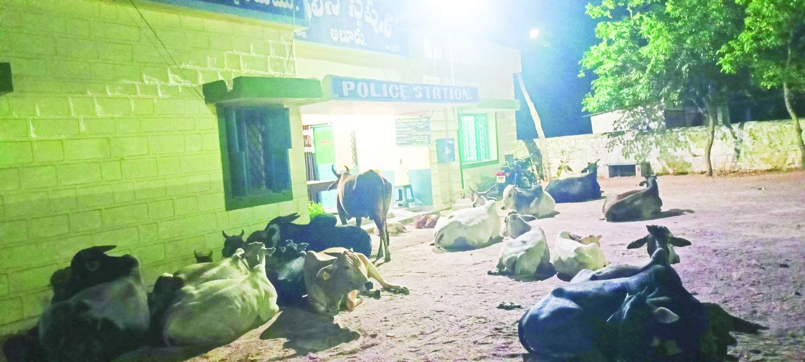 ఆలూరు పోలీసు స్టేషన్ ముందు ధర్నా చేస్తున్న పశువులు