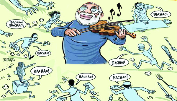 'మరేం లేదు. ప్రజాస్వామ్యమంటే భిన్నమైన అభిప్రాయాలను ఆహ్వానించడం అని నేను చిన్నప్పుడు చదువుకున్నాను. ఈయనేమో ఎవరు తనకు భిన్నంగా మాట్లాడినా బ్రిటిష్ వారిని మించి రాజద్రోహం నేరం మోపి జైల్లో కుక్కుతున్నాడు. మరోపక్క ఇన్కం టేక్స్, సిబిఐ, ఇ.డి వంటి రాజ్యాంగ సంస్థలను దుర్వినియోగపరుస్తూ, తనకు నచ్చని వాళ్లపై దాడులు చేయిస్తున్నాడు. ఇవన్నీ కూడా ప్రజాస్వామ్యమేనంటారా? ఒక పక్క వీటిని ధ్వంసం చేస్తూ, మరో పక్క బరితెగించి ప్రపంచాధినేతల ముందే కోతలు కోయడం ఆయనకే చెల్లిందండోరు...'