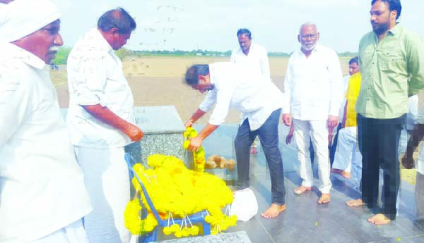 ప్రజాశక్తి-యద్దనపూడి: మండల కేంద్రమైన యద్దనపూడి గ్రామంలోని మాజీ మంత్రి గొట్టిపాటి హనుమంతరావు ఘాట్ వద్ద ఆయన వర్ధంతి సందర్భంగా అద్దంకి ఎమ్మెల్యే గొట్టిపాటి రవికుమార్ పూల మాలలు వేసి నివాళి అర్పించారు. ఈ సందర్భంగా రవికుమార్ మాట్లాడుతూ తన పెదనాన్న పేద ప్రజలకు అండగా ఉండేవారని, అదే విధంగా తాము కూడా పేదలకు అండగా ఉంటామని పేర్కొన్నారు. ఆయన ఆశయాలు నెరవేర్చేందుకు కృషి చేస్తామని అన్నారు. గ్రామ కూడలిలో ఉన్న హనుమంత రావు విగ్రహానికి పూల మాలలు వేసి నివాళి అర్పించారు. కార్యక్రమంలో యద్దనపూడి మాజీ ఎంపిపిలు గొట్టిపాటి వెంకట సుబ్బయ్య, గొట్టిపాటి రాంబాబు, వైసిపి నాయకుడు గొట్టిపాటి భరత్ కుమార్, నాయకులు మువ్వ రాంబాబు, వెంకటరావు, శ్రీరామమూర్తి, వలేరు బాలకోటేశ్వరరావు, వీరేంద్ర, జాగర్లమూడి సుబ్బారావు, హనుమంతరావు అభిమానులు, రెండు పార్టీల నాయకులు పాల్గొన్నారు.