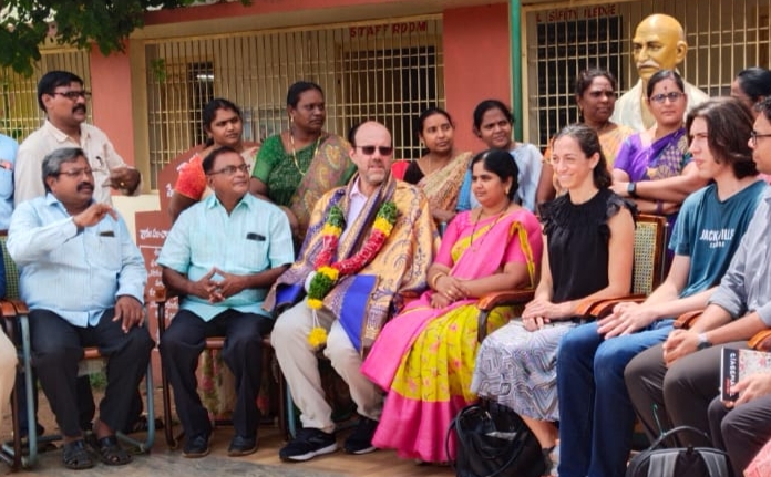 ఆర్థిక శాస్త్రంలో నోబుల్ బహుమతి గ్రహీత, అమెరికా దేశానికి చెందిన మైఖేల్ రాబర్ట్ క్రెమెర్ తన బృందంతో భీమడోలు మండలం పూళ్ళ హైస్కూలును శుక్రవారం సందర్శించారు. ప్రపంచంలోని పలు విశ్వవిద్యాలయాలలో వివిధ హోదాల్లో అధ్యాపకులు, ఆచార్యులుగా పనిచేసిన క్రెమర్ ఆర్థిక శాస్త్రంలో తన పరిశోధనలకు గాను 2019వ సంవత్సరంలో మరొక ఇద్దరు శాస్త్రవేత్తలతో కలిసి నోబుల్ బహుమతి సంయుక్త గ్రహీతగా నిలిచారు. వివిధ అంశాలపై అధ్యయనానికి మన దేశ పర్యటన వచ్చిన ఆయన శుక్రవారం పూళ్ళ హైస్కూల్కు విచ్చేశారు. అక్కడ పిఎఎల్ విధానములో నిర్వహిస్తున్న గణితశాస్త్ర లేబరేటరీని సందర్శించారు. అనంతరం విద్యార్థులతో మాట్లాడారు. ఈ సందర్భంగా టైం టేబుల్స్, బైజో టాబ్స్, ఐఎఫ్బి పెరల్స్పై విద్యార్థులతో ముఖాముఖి నిర్వహించారు. ఈ సందర్భంగా పాఠశాల ప్రధానోపాధ్యాయులు భువనేశ్వర్ రావుతో పాటు పాఠశాలకు చెందిన గణితశాస్త్ర ఉపాధ్యాయులు వెంకటేష్, కనకారావు, లీలా అపరంజిని, గణిత శాస్త్ర ప్రయోగశాల రాష్ట్ర సమన్వయకర్త కెవి.సత్యనారాయణ వాటి వినియోగం, విద్యార్థుల అవగాహన ఇతర అంశాల గురించి ఆయనకు తెలియజేశారు. ఆ తర్వాత గ్రామ సర్పంచి డి.సుజాత ప్రసాద్, ప్రముఖులు కేతిరెడ్డి విశ్వేశ్వరరావు, పాఠశాలకు చెందిన ఉపాధ్యాయ బృందం నోబుల్ బహుమతి గ్రహీతను సత్కరించారు.