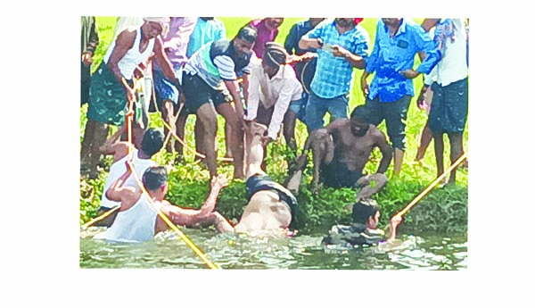 ప్రజాశక్తి- రేగిడి : కుటుంబ పోషణలో ఉపాధి కోసం వచ్చి మడ్డువలస కుడి ప్రధాన కాలువలో స్నానం చేయడానికి దిగి ప్రమాదవశాత్తు జారిపడి వ్యక్తి మృత్యువాత పడిన ఘటన పలువురిని కంట తడి పెట్టించింది. కాలువ వద్ద చెప్పులు, బట్టలు ఆనవాళ్ళతో పొందూరు మండలం లోలుగు గ్రామానికి చెందిన నవిరి సుదర్శన్గా గుర్తించారు. పోలీసులు, రెవెన్యూ అధికారి సమాచారం మేరకు రేగిడి మండలం పోరాం గ్రామ సమీపం మడ్డువలస కాలువలో పడి పొందూరు మండలం లోలుగు గ్రామానికి చెందిన నవిరి సుదర్శన్ (28) గురువారం మృతి చెందారు. పోరాం గ్రామానికి చెందిన బూరాడ విష్ణుమూర్తి వద్ద కారు డ్రైవరుగా పనిచేస్తున్న నవిరి సుదర్శన్ ఆ గ్రామ సమీపంలో గల మడ్డువలస కాలువకు స్నానానికి వెళ్ళగా ప్రమాదవశాత్తు కాలుజారి నీటిలో మునిగిపోయారు. అక్కడకు వ్యవసాయ కూలీలు స్నానానికి వచ్చి చెప్పులు, బట్టలు చూసి స్నానానికి దిగిన వ్యక్తి కనిపించక పోవడంతో పోలీసులకు, ఫైర్ సిబ్బందికి సమాచారం అందిం చారు. ఫైర్ సిబ్బంది లైఫ్ జాకెట్లు వేసుకొని కాలువలో వెతకగా సుమారు 30 మీటర్లు దూరంలో సుదర్శన్ శవమై తేలేడు. విఆర్ఒ సత్యనారాయణ, పోలీస్ సిబ్బంది, కుటుంబ సభ్యుల సమక్షంలో పంచినామా నిర్వహించారు. పోస్టుమార్టం కోసం రాజాం ప్రభుత్వాసుపత్రికి తరలించారు. మృతునికి తల్లిదండ్రులు, భార్య అరుణ ఉన్నారు. కేసు దర్యాప్తు చేస్తున్నట్లు ఎస్ఐ శ్రీనివాసరావు తెలిపారు.