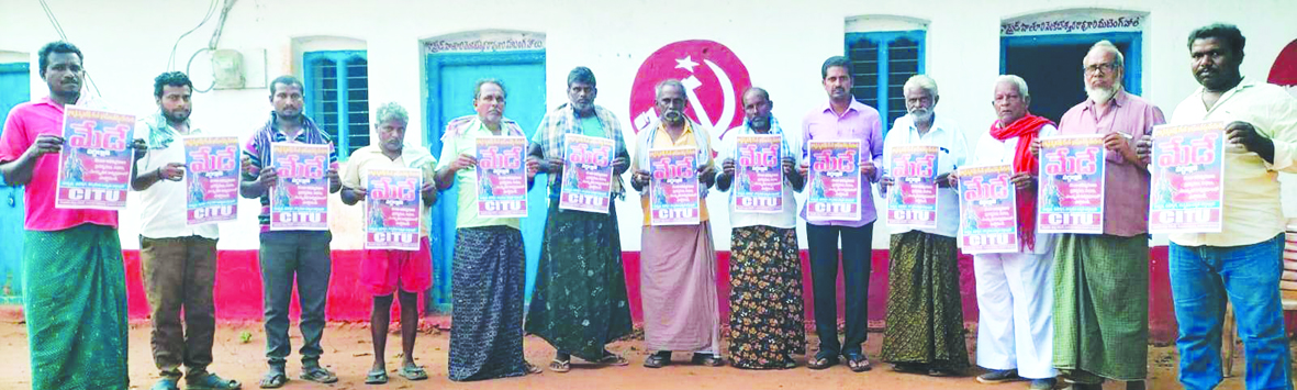 చింతలపూడి : ప్రపంచ కార్మిక దినోత్సవం మేడేను జయప్రదం చేయాలని సిఐటియు జిల్లా ఉపాధ్యక్షులు ఆర్విఎస్.నారాయణ పిలుపునిచ్చారు. స్థానిక ప్రజాసంఘాల కార్యాలయంలో సిఐటియు మండల నాయకులు శుక్రవారం వాల్పోస్టర్ను ఆవిష్కరించారు. ఈ సందర్భంగా ఆయన మాట్లాడుతూ కార్మిక హక్కులను కుదించివేస్తున్న నేటి తరుణంలో ప్రపంచవ్యాప్తంగా కార్మిక ఉద్యోగ వర్గాలు తిరుగుబాటు బావుటా ఎగరవేస్తున్నాయని, పెద్దఎత్తున ఆందోళన కార్యక్రమాలు చేపట్టి ప్రభుత్వాలకు నిరసన తెలియజేస్తున్నాయని తెలిపారు. అనేక పరిశ్రమలను ప్రయివేటు పరం చేయడానికి బెజెపి కంకణం కట్టుకుందన్నారు. బడా పారిశ్రామిక వేత్తలకు లాభాలు ఆర్జించి పెట్టడానికి కార్మికులు పోరాడి సాధించుకున్న కార్మిక హక్కులను కాలరాస్తున్నాయన్నారు. మేడేను స్ఫూర్తిగా తీసుకొని కార్మిక వర్గం ఒక్కటై మేడే ప్రతిజ్ఞ చేయాలని పిలుపునిచ్చారు. ఈ కార్యక్రమంలో యునైటెడ్ మెడికల్, హెల్త్ ఎంప్లాయిస్ యూనియన్ జిల్లా కార్యదర్శి ఎస్డి.జఫ్రుల్లా, సిఐటియు మండల అధ్యక్షులు నత్తా వెంకటే శ్వరరావు, ప్రధాన కార్యదర్శి, ఎం.బాలరాజు, అంగన్వాడీ యూనియన్ ప్రాజెక్ట్ అధ్యక్ష కార్యదర్శులు ఎన్.సరోజిని, టి.మాణిక్యం, అరుణ, కవిత, సరళ, పద్మ ,ఆశ వర్కర్స్, యూనియన్ మండల కార్యదర్శి సరళ కుమారి పాల్గొన్నారు.