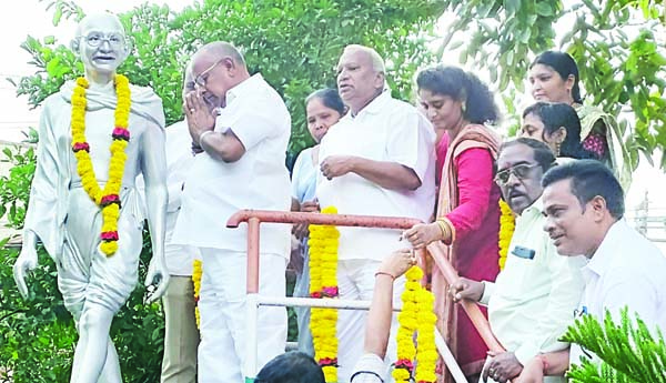ప్రజాశక్తి-గజపతినగరం రూరల్ : మహాత్ముని అడుగుజాడల్లో నడవాలని ఎమ్మెల్యే బొత్స అప్పలనరసయ్య కోరారు. స్థానిక వైసిపి కార్యాలయంలో గాంధీ చిత్రపటానికి ఆయన పూలమాలలు వేసి ఘనంగా నివాళులర్పించారు. కార్యక్రమంలో ఎఎంసి చైర్మన్ వేమలి ముత్యాలనాయుడు, జెడ్పిటిసి గారు తౌడు, మాజీ జెడ్పిటిసి మక్కువ శ్రీధర్, వైసిపి నాయకులు బెల్లాన త్రినాథరావు, మండల సురేష్, కరణం ఆదినారాయణ పాల్గొన్నారు. పంచాయతీ కార్యాలయం వద్ద గాంధీ విగ్రహానికి మాజీ మంత్రి పడాల అరుణ, మాజీ ఎమ్మెల్యే కె.ఎ.నాయుడు, టిడిపి రాష్ట్ర కార్యనిర్వాహక కార్యదర్శి కరణం శివరామకృష్ణ, ఎంపిపి బెల్లాన జ్ఞాన దీపిక, జెడ్పిటిసి గార తవుడు నివాళులర్పించారు. 22 మంది పారిశుధ్య కార్మికులను ఎంపిపి, జెడ్పిటిసి ఈ సందర్భంగా సత్కరించారు. కార్యక్రమంలో సర్పంచ్ నరవ కొండమ్మ ఉపసర్పంచ్ కర్రీ రామనాయుడు పాల్గొన్నారు. పురిటిపెంటలో సర్పంచ్ ఎస్.విజయలక్ష్మి, ఉప సర్పంచ్ మండల సురేష్, ఎంపిడిఒ కార్యాలయంలో ఎంపిడిఒ కె.కిషోర్ కుమార్, ప్రభుత్వ డిగ్రీ కళాశాలలో ప్రిన్సిపల్ రావాడ సత్యనారాయణ.. గాంధీకి నివాళులర్పించారు.