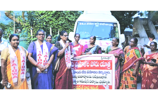 ప్రజాశక్తి - పెద్దాపురం మహిళలపై హింసను అరికట్టవలసిన ప్రభుత్వాలు హింసను ప్రోత్సహించేలా వ్యవహరిస్తున్నాయని అఖిల భారత మహిళా సంఘం రాష్ట్ర అధ్యక్షులు ప్రభావతి అన్నారు. మహిళలపై జరుగుతున్న హింసను అరికట్టాలని ఐద్వా ఆధ్వర్యంలో జూలై 28న శ్రీకాకుళంలో ప్రారంభమైన జాతా పెద్దాపురం చేరుకుంది. ఈ సందర్భంగా స్థానిక కొండయ్య పేట, మిరపకాయల వీధి, వరహాలయ్యపేటలో ఐద్వా పట్టణ కార్యదర్శి కూనిరెడ్డి అరుణ అధ్యక్షతన జరిగిన కార్యక్రమాలలో ప్రభావతి ప్రసంగించారు. దేశంలో, రాష్ట్రంలోనూ మహిళలపై హింసాకాండ రోజురోజుకు పెరుగుతోందన్నారు. మంత్రులు, ఎంఎల్ఎలు, ఎంపీలు సైతం మహిళలపై వేధింపులకు పాల్పడుతున్నారన్నారు. ముఖ్యమంత్రి జగన్మోహన్ రెడ్డి అధికారంలోకి రాకముందు మద్యాన్ని నియంత్రించి మహిళల కళ్ళల్లో ఆనందాన్ని నింపుతానని ప్రకటించారన్నారు. నేడు మద్యానికి అధిక ప్రాధాన్యత ఇచ్చి పాలన సాగించడం వల్ల మహిళలు తీవ్ర ఇబ్బందులు పడుతున్నారన్నారు. మహిళలపై జరుగుతున్న హింసాకాండ, అత్యాచారాలకు వ్యతిరేకంగా జరిగే ఉద్యమాలలో మహిళలు ఎక్కువగా పాల్గొనాలని పిలుపునిచ్చారు. ఈ కార్యక్రమంలో మహిళా సంఘం జిల్లా కార్యదర్శి వరలక్ష్మి, సహాయ కార్యదర్శులు పూర్ణ, రమణి, సత్యవతి, రొంగల సుబ్బలక్ష్మి, టి.పద్మ, లిల్లీ, అమ్ములు, సావిత్రి, సూరమ్మ, అమత, నమ్రత పాల్గొన్నారు.ప్రజానాట్యమండలి కళాకారులు దారపురెడ్డి కృష్ణ, రొంగల వీర్రాజు, దారపురెడ్డి సత్యనారాయణ బృందం గీతాలు ఆలపించారు.