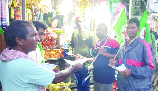 కురుపాం : మన్యం బంద్కు సహకరించాలని ఆదివాసీ గిరిజన సంఘం జిల్లా ఉపాధ్యక్షులు ఎం.శ్రీనివాసరావు, సహాయ కార్యదర్శి పి.తిరుపతిరావు కోరారు. బుధవారం కురుపాంలో దుకాణాల వద్దకు వెళ్లి కరపత్రాలు పంచుతూ బంద్కు సహకరించాలని కోరారు. కార్యక్రమంలో గిరిజన సంఘం జిల్లా కమిటీ సభ్యులు పి.మోహనరావు, కె.సుందర్ రావు తదితరులు పాల్గొన్నారు.