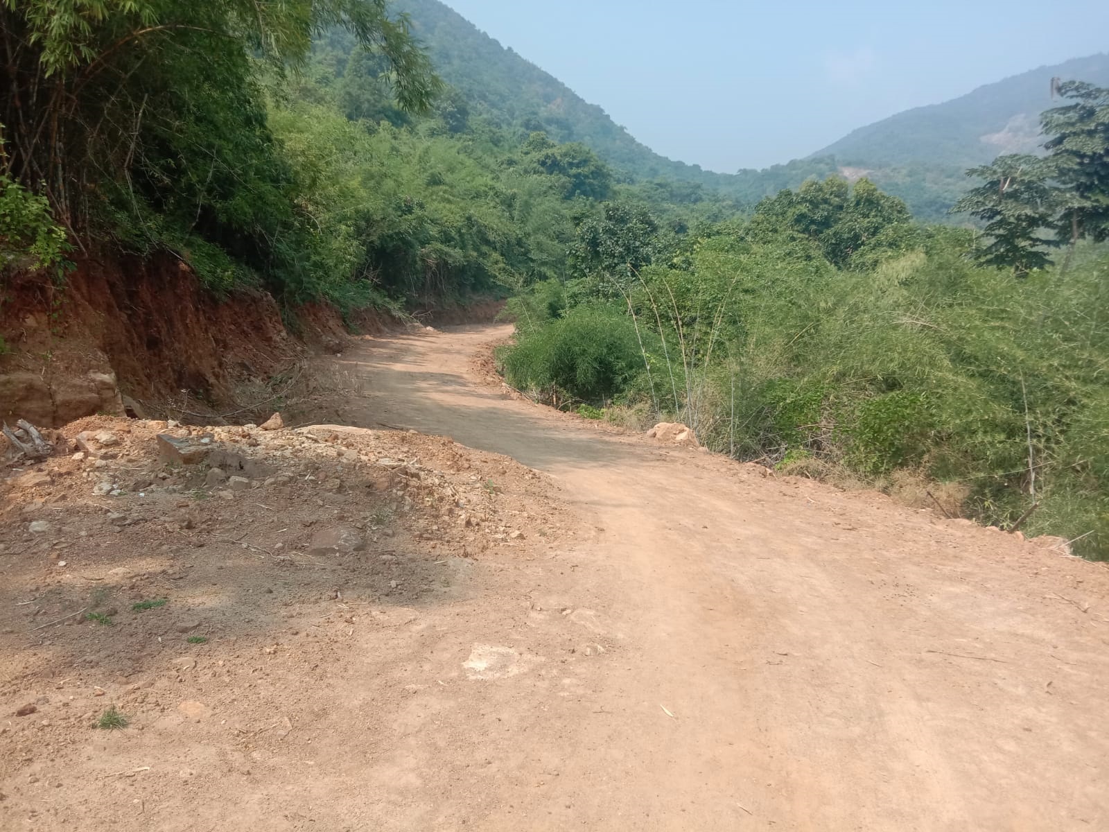 కొండమార్గంలో తాత్కాలిక మట్టి రోడ్డు నిర్మాణం
