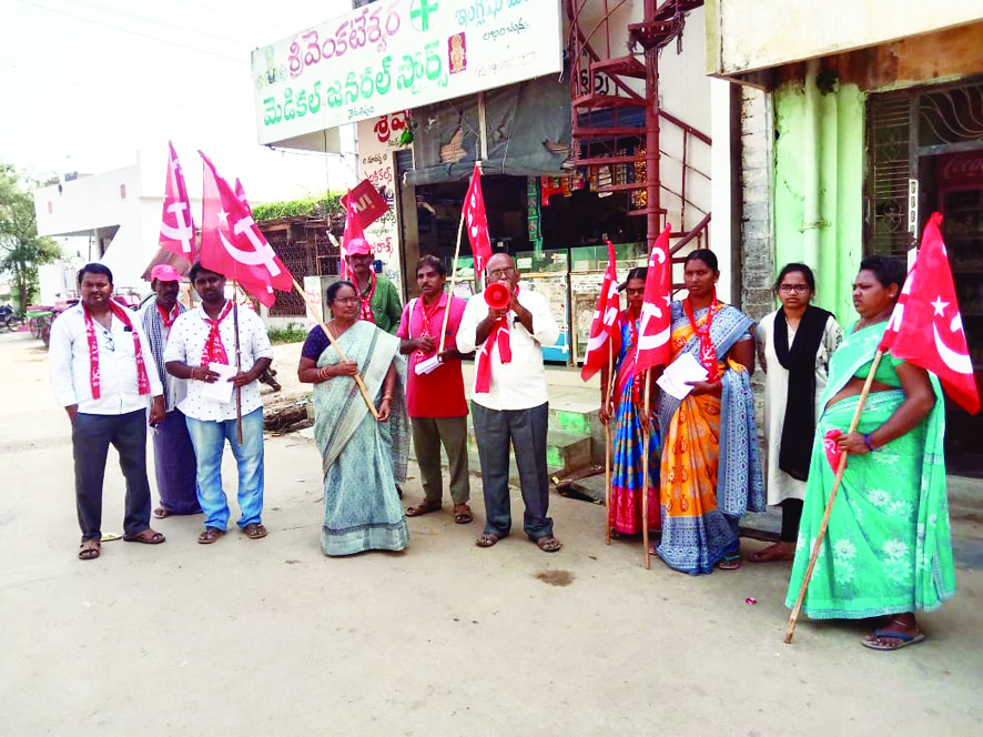 సత్తెనపల్లి: బిజెపి అనుసరిస్తున్న కార్పొరేట్ కమ్యూనల్, విధానాలకు వ్యతిరేకంగా ప్రత్యామ్నాయంగా సిపిఎం ప్రజల ముందు ఉంచుతున్న ప్రణాళికకు మద్దతు తెల పాలని సిపిఎం పల్నాడు జిల్లా కార్యదర్శి గుంటూరు విజయకుమార్ పేర్కొన్నారు. రాజుపాలెం మండలంలో సిపిఎం ఆధ్వర్యంలో జరుగుతున్న ప్రజా చైతన్య యాత్రను మూడో రోజుగ దేవరంపాడులో ఆయన ప్రారంభించారు. ఈ సందర్భంగా విజయకుమార్ మాట్లాడుతూ కేంద్రంలో మోడీ అనుసరిస్తున్న విధానాలు దేశానికి వినాశకరంగా తయారయ్యాయని, మ: న రాష్ట్రానికి ప్రత్యేక హౌదా ఇవ్వకుండా, విశాఖ స్టీల్ ప్లాంట్ లాంటి ప్రజా సంపదలను ప్రైవేటు వారికి అప్పగించడానికి సిద్ధమవుతున్న మోడీ విధానాలను వ్యతిరేకించాలన్నారు. మన రాష్ట్రంలోని ప్రధాన రాజకీయ పార్టీలు మోడీని బలపరచడాన్ని ఆయన తప్పు పట్టారు. ఉమ్మడి ఆంధ్రప్రదేశ్ రాష్ట్రం నుండి విడిపోయిన తర్వాత మన రాష్ట్రానికి వ్యవసాయమే ప్రధాన జీవనాధారం అని, అలాగే మన పల్నాడు జిల్లా కూడా వ్యవసాయమే ప్రధాన జీవనాధారమని, అటువంటి వ్యవసాయం తీవ్రమైన సంక్షోభంలో ఉన్నప్పటికీ పాలకులు పట్టించుకోవడంలేదని ఆయన ఆందోళన వ్యక్తం చేశారు. పల్నాడు జిల్లాలో గత సంవత్సరం కూడా లక్షన్నర ఎకరాలు సాగు భూమి బీడుగా మారిందని, కేవలం పం టలు గిట్టుబాటు కానందు వల్ల, ఈ సంవత్సరం వర్షాలు అననుకూల వాతావరణంతో సగం పైర్లు అసలు వేయ లేదని, వేసిన భూమిలో కూడా పైర్లు ఎండిపోతున్నాయని, అన్నారు. సిపిఎం ప్రజల అబివృద్ధిని దృష్టిలో ఉంచుకొని 30 డిమాండ్లను రూపొందించి, వాటిని సాధించడం కోసం బిజెపికి వ్యతిరేకంగా విశాల శక్తులను ఏకం చేయడానికి కృషి చేస్తోందని, సిపిఎం విధానాలను ప్రజానీకం బల పరచాలని కోరారు. సిపిఎం పాదయాత్ర కార్యక్రమం ఆదివారం దేవరంపాడు, పెద్ద నెమలిపురి, కోటనేమిలిపురి, కొండమోడు, అంచులవారిపాలెం, అనుపాలెం, చౌటుప్ప పైపాలెం మీదుగా పులిచింతల ఆర్ఆర్ సెంటరులో ప్రచా రంతో ముగిసింది. సిపిఎం జిల్లా కార్యదర్శి వర్గ సభ్యులు ఆంజనేయ నాయక్ మాట్లాడుతూ నవంబర్ 15వ తేదీ విజయవాడలో సిపిఎం పార్టీ ఆధ్వర్యంలో ప్రత్యామ్నాయ విధానాల కోసం, రాష్ట్ర సమగ్ర అభివృద్ధి కోసం భారీ ప్రజా ప్రదర్శన, బహిరంగ సభ జరగనుందని చెప్పారు. సభలో సిపిఎం ఆల్ ఇం డియా నాయకులు పాల్గొంటారని, ఈ కార్యక్రమాలను జయప్రదం చేయాలని ప్రజలకు విజ్ఞప్తి చేశారు. కార్య క్రమంలో తెలగపల్లి శ్రీను, ఎ. లక్ష్మీశ్వర్ రెడ్డి, బెల్లం కొండ దుర్గారావు, కె.దుర్గారావు, శ్రీలక్ష్మి ,గుంటూరు మల్లే శ్వరి, తెలగపల్లి కష్ణవేణి, రమణ, సృజనాబాయి, వెంకా యమ్మ, భూలక్ష్మి పాల్గొన్నారు.