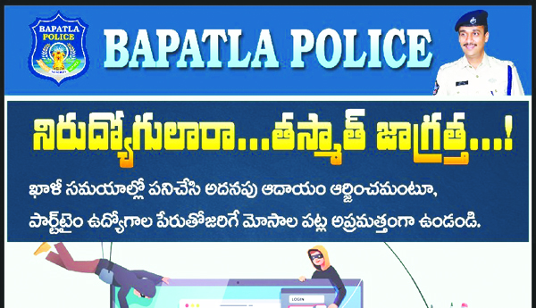 ప్రజాశక్తి-బాపట్ల జిల్లా: పార్ట్ టైమ్ ఉద్యోగాల పేరుతో జరిగే మోసాల పట్ల యువత అప్రమత్తంగా ఉండాలని బాపట్ల జిల్లా ఎస్పీ వకుల్ జిందాల్ హెచ్చరించారు. గురువారం ఆయన మాట్లాడుతూ ఖాళీ సమయాలలో పనిచేసి అదనపు ఆదాయం ఆర్జించమంటూ, పార్ట్ టైమ్ ఉద్యోగాల పేరుతో జరిగే మోసాల గురించి వివరించారు. 'ఇంటి వద్దే ఉంటూ ఖాళీ సమయాలలో పనిచేస్తూ అదనంగా డబ్బు సంపాదించండి.. విద్యార్థులు, గృహిణులు, ఉద్యోగులు అదనపు ఆదాయం సంపాదించవచ్చు' వంటి ఆకట్టుకునే విధంగా ప్రకటనలు కుమ్మరించడంతో ఆర్థిక కష్టాలు కొంతైనా తీరతాయని నమ్మి జాబ్ పోర్టల్స్లో నిరుద్యోగులు రెజ్యూమ్లు అప్లోడ్ చేస్తుంటారని, ఇదే అదునుగా భావించి సైబర్ నేరగాళ్లు నిరుద్యోగులు జాబ్ పోర్టల్స్లో అప్లోడ్ చేసిన రెజ్యూమ్ల నుంచి వివరాలను సేకరించి నిరుద్యోగులకు తరచూ ఫోన్లు చేస్తూ సంభాషణలు కొనసాగిస్తారని, రిజిస్ట్రేషన్ పేరిటగానీ లేక మరేదైనా కారణం చెప్పి తమ వ్యక్తిగత ఖాతాలో డబ్బులు జమ చేయమని కోరుతారని, అలా జమచేసిన వారు డబ్బు కోల్పోతారని తెలిపారు. కాబట్టి ఉద్యోగార్థులు అప్రమత్తంగా ఉండాలని కోరారు. సంస్థలు జీతాలు ఇచ్చి నియమించుకుంటాయి కానీ డబ్బులు తీసుకొని ఉద్యోగాలు ఇవ్వవు అనే విషయాన్ని గుర్తించాలన్నారు. ఆఫర్ లెటర్లో కంపెనీల లోగోలు, లెటర్ హెడ్స్ తదితర వివరాలను ధ్రువీకరించుకోవాలని, అపరిచితులకు డబ్బులు బదిలీచేసే ముందు తార్కికంగా ఆలోచించాలని హెచ్చరించారు. బ్యాంక్ అకౌంట్స్, టాక్స్ ఫామ్స్, పాన్ నెంబర్, ఆధార్ కార్డ్ లాంటివాటిని అడుగుతున్నారంటే అనుమానించాలని తెలిపారు. కంపెనీలు అధికారిక వెబ్సైట్లలోనే ఉద్యోగ ఖాళీల వివరాలను, అవసరాలను పొందుపరుస్తున్నాయన్నారు. కాబట్టి ఇలాంటి నమ్మదగ్గ మార్గాలలో ఉద్యోగ ప్రయత్నాలు సాగిస్తే మోసపోవడానికి ఆస్కారం ఉండదని జిల్లా ఎస్పీ తెలిపారు. ఇలాంటి పార్ట్ టైమ్ ఉద్యోగాల పేరుతో జరిగే మోసాల పట్ల ప్రజలు అప్రమత్తంగా ఉండాలని, ఎవరైనా ఈ తరహా మోసానికి గురైతే వెంటనే పోలీసులకు సమాచారం అందించాలని, లేదా సైబర్ హెల్ప్ లైన్ నెంబర్ 1930కు కాల్ చేయాలని ఎస్పీ తెలియజేశారు.