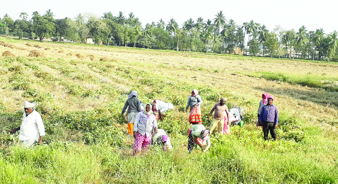 మండలవ్యాప్తంగా అన్ని గ్రామాల్లో మినుము తీత పనులు ముమ్మరంగా సాగుతున్నాయి. మండలంలో రెండో పంట దాళ్వా సాగు లేకపోవడంతో రైతులు మినుము సాగు చేపట్టారు. ప్రస్తుతం మినుము పంట కోతకు రావడంతో పది రోజులుగా మండలంలోని అన్ని గ్రామాల్లో మినుము తీత పనులు సాగుతున్నాయి. రైతులు కూలీలతో మినుము తీత పనులు చేయిస్తున్నారు. పలు గ్రామాల్లో మినుము పంట తీత పనులు ఒకపక్క జరుగుతుండగా, మరికొన్ని గ్రామాల్లో తీసిన మినుమును నూర్పిడి చేసే పనులు ముమ్మురంగా సాగుతున్నాయి. దీంతో ప్రస్తుతం రైతులు, కూలీలు పనుల్లో తలమునకలై ఉన్నారు. రెండు పూటల పని చేసే కూలీకి కూలి సొమ్ముగా రూ.500 చెల్లిస్తున్నారు. సుదూర ప్రాంతాల నుంచి వచ్చే కూలీలకు ఆటో ఛార్జీలకు అదనంగా రూ.50 నుంచి రూ.వంద వరకూ ఇస్తున్నారు. మండలవ్యాప్తంగా 12 వేల ఎకరాల్లో మినుము సాగు రైతులు చేపట్టగా 40 శాతం వరకు మినుము తీతలు జరిగినట్లు మండల వ్యవసాయాధికారి బి.వేణుమాధవ్ చెప్పారు. గతేడాది మినుము సాగు ఆశాజనకంగా ఉన్నా ఈ ఏడాది తెగుళ్ల కారణంగా కొంతమేర దిగుబడులు తగ్గాయన్నారు. ఎకరానికి ఐదు నుంచి ఆరు క్వింటాళ్లు వరకూ దిగుబడులు వస్తున్నట్లు చెప్పారు.