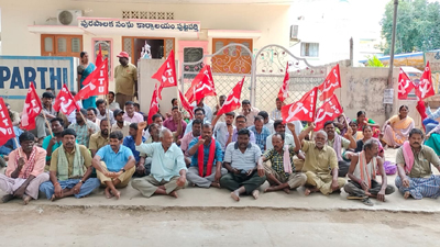 ధర్మవరం టౌన్ : మున్సిపల్కార్మికుల సమస్యలను పరిష్కరించకపోతే ఉద్యమాలను మరింత ఉధృతం చేస్తామని రైతుసంఘం జిల్లా అధ్యక్షులు జంగాలపల్లి పెద్దన్న, మున్సిపల్ ఎంప్లాయిస్ఆండ్ వర్కర్స్ యునియన్ రాష్ట్ర అధ్యక్షులు నాగభూషణం హెచ్చరించారు. ఎన్నికలకు ముందు జగన్ ఇచ్చిన హామీలను తక్షణమే నెరవేర్చాలంటూ సీఐటీయూ ఆధ్వర్యంలో మున్సిపల్ కార్యాలయ ప్రధాన గేటును మూసివేసి అక్కడే బైటాయించి నిరసన వ్యక్తం చేశారు. ఈసందర్భంగా నాయకులు మాట్లాడుతూ కాంట్రాక్టు, అవుట్సోర్సింగ్ ఉద్యోగులను వెంటనే పర్మినెంట్ చేయాలని డిమాండ్ చేశారు. మున్సిపాలిటీల్లో దళారి వ్యవస్థను రద్దుచేయాలన్నారు. కార్మికులకు ఆస్కాస్ నుండి తొలగించి 010 పద్దతి ప్రకారం సమాన పనికి సమాన వేతనం ఇవ్వాలన్నారు. కార్మికుల సమస్యల పరిష్కారం కోసం ఈనెల 7న జిల్లా కలెక్టరేట్ను ముట్టడిస్తామని హెచ్చరించారు. అప్పటికి ప్రభుత్వం దిగిరాకపోతే చలో విజయవాడ కార్యక్రమాన్ని చేపడుతామన్నారు. ఈ కార్యక్రమంలో సిఐటియు మండల అధ్యక్షులు ఎల్ఆదినారాయణ, కార్యదర్శి అయూబ్ ఖాన్, సిపిఎం పట్టణ కార్యదర్శి నామాలనాగార్జున, డీవైఎఫ్్ఐ బాలాజీ, షెక్షావలి, అనంతపురం నగర మున్సిపాలిటీ కార్మికసంఘం అధ్యక్షుడు ఎర్రిస్వామి, ధర్మవరం మున్సిపల్ కార్మికసంఘం అధ్యక్ష, కార్యదర్శులు బాబు, చెన్నకేశవులు, గౌరవాధ్యక్షులు పుల్లన్న, కార్మికులు పాల్గొన్నారు.