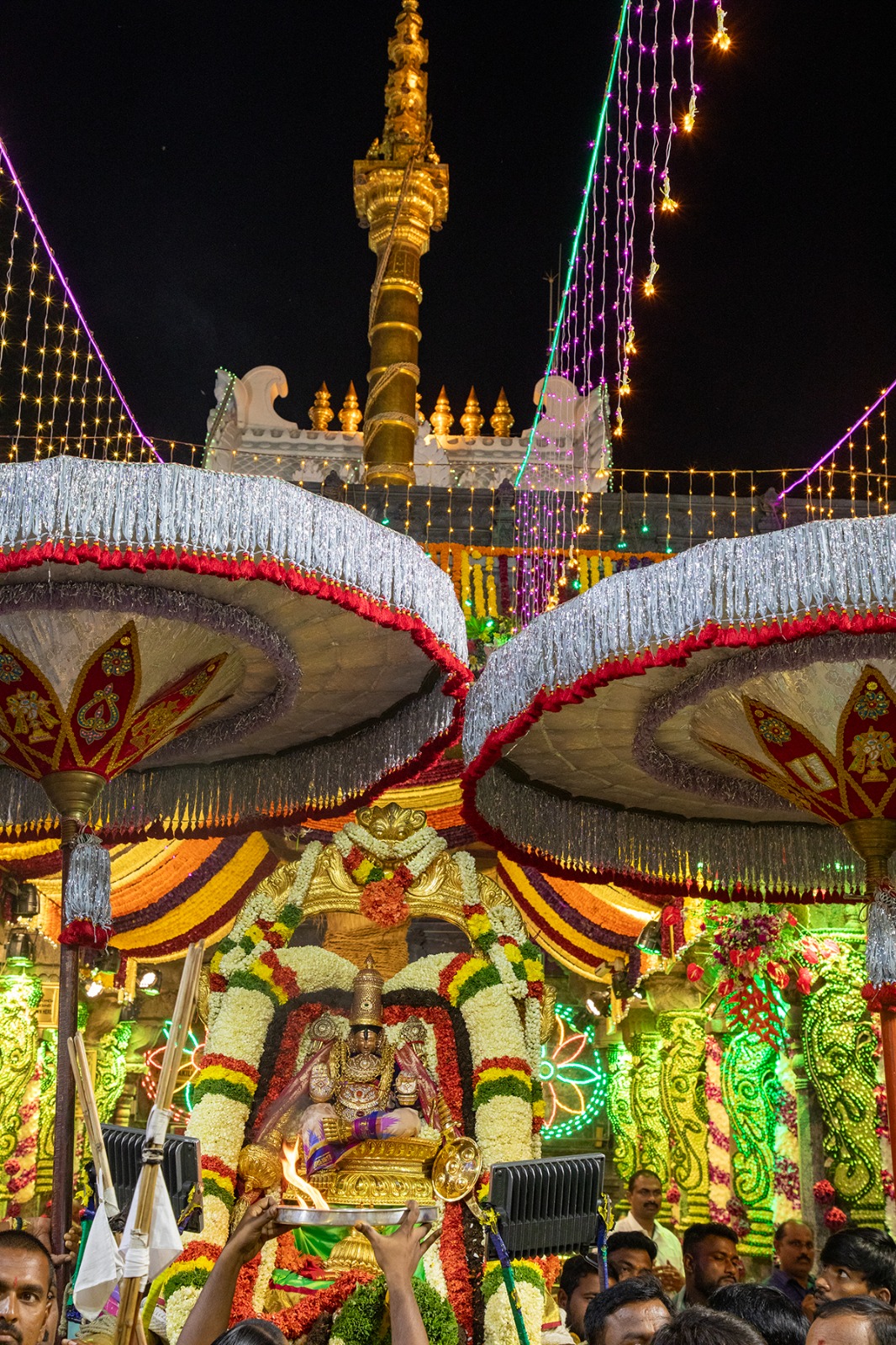 సెప్టెంబర్ 18న ముఖ్యమంత్రి వైఎస్ జగన్ రాష్ట్ర ప్రభుత్వం తరఫున శ్రీవారికి పట్టువస్త్రాలు సమర్పిస్తారు. సాయంత్రం 6.15 నుండి 6.30 గంటల మధ్య మీన లగంలో శాస్త్రోక్తంగా ధ్వజారోహణం నిర్వహిస్తారు. బ్రహ్మోత్సవాలు ధ్వజారోహణంతో ప్రారంభమవుతాయి. శ్రీదేవి, భూదేవి సమేత శ్రీమలయప్పస్వామివారి సమక్షంలో వేదగానాల మధ్య మంగళవాద్యాలు మోగుతుండగా అర్చకస్వాములు బంగారు ధ్వజస్తంభంపై గరుడధ్వజాన్ని ఎగురవేస్తారు. ఈ కార్యక్రమం ద్వారా సకల దేవతలను, అష్టదిక్పాలకులను బ్రహ్మోత్సవాలకు ఆహ్వానిస్తారు. ఆ తరువాత రాత్రి 9 నుండి 11 గంటల వరకు పెద్దశేషవాహన సేవ జరుగుతుంది.