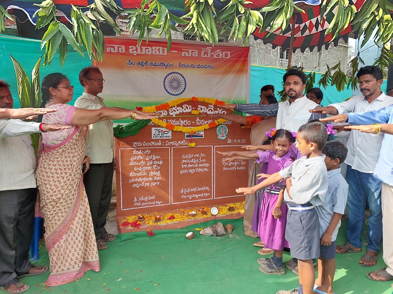 రాష్ట్రంలో 'నా భూమి నా దేశం' పేర నిర్వహిస్తున్న కార్యక్రమాలలో అందరూ భాగస్వాములు కావాలని కలెక్టర్ ప్రసన్న వెంకటేష్ కోరారు. భీమడోలు మండలం సూరప్పగూడెంలో బుధవారం సాయంత్రం నిర్వహించిన 'నా భూమి నా దేశం' కార్యక్రమంలో ఆయన పాల్గొన్నారు. తొలుత గాంధీ, అంబేద్కర్ చిత్రపటాలకు పూలమాలవేసి సత్కరించారు. స్థానిక అమరవీరుల పేర్లు గల శిలాఫలకాలను ఆవిష్కరించారు. అనంతరం అమరవీరుల సంస్మరణార్థం మొక్కలు నాటారు. అనంతరం ఆయన మాట్లాడుతూ గత సంవత్సరం ప్రారంభమైన ఆజాద్కి అమృత్ మహోత్సవ కార్యక్రమంలో భాగంగా ప్రస్తుత సంవత్సరం నా భూమి నా దేశం కార్యక్రమాలు రాష్ట్రవ్యాప్తంగా కొనసాగుతున్నట్లు తెలిపారు. ఈ కార్యక్రమాలు ఆగస్టు 15వ తేదీ వరకూ కొనసాగుతాయన్నారు. ప్రతీ గ్రామంలో అమరవీరుల పేర్లు రాసిన శిలాఫలకాల ఆవిష్కరణ, వారికి గుర్తుగా మొక్కలు నాటడం, పంచ ప్రాణ ప్రతిజ్ఞ లు చేయించడం వంటి కార్యక్రమాలు కొనసాగుతాయన్నారు. ఈ కార్యక్రమంలో జిల్లా పరిషత్ సిఇఒ రవికుమార్, భీమడోలు ఎంపిడిఒ పద్మావతి దేవి, తహశీల్దార్ ఇందిరా గాంధీ, పంచాయతీ విస్తరణాధికారి ముత్తయ్య, డిప్యూటీ తాహశీల్దార్ షంషుద్దీన్తో పాల్గొన్నారు.