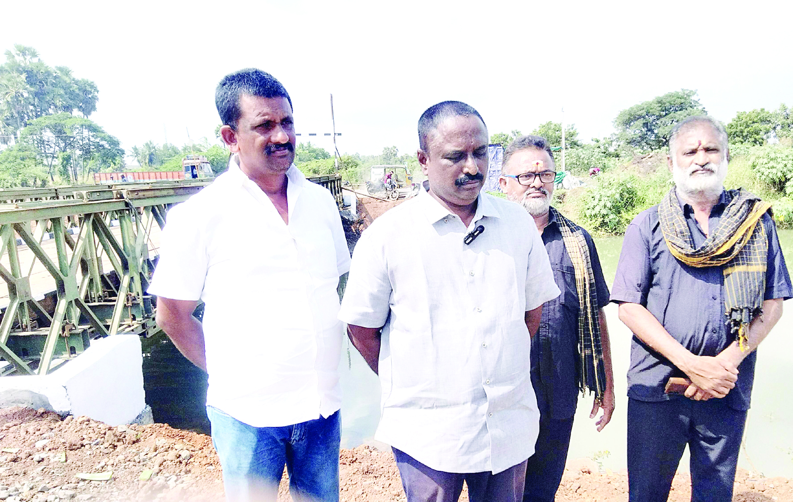 ఏలూరు కాలువపై గుండుగొలను వద్ద నూతనంగా నిర్మించిన బెయిలీ వంతెనను ఈ నెల 25న ప్రారంభిస్తున్నట్లు పంచాయతీ ఉప సర్పంచి, వైసిపి నాయకులు ముదుండి సూర్యనారాయణరాజు తెలిపారు. ఉంగుటూరు, దెందులూరు ఎంఎల్ఎలు పుప్పాల వాసుబాబు, కొఠారు అబ్బయ్యచౌదరితో పాటు కలెక్టర్ ప్రసన్న వెంకటేష్, ఎంపీ కోటగిరి శ్రీధర్ ప్రారంభోత్సవానికి హాజరుకానున్నారని తెలిపారు. వంతెన ముగింపు పనులను ఉపసర్పంచి గురువారం పర్యవేక్షించారు. ఈ సందర్భంగా ఆయన మాట్లాడుతూ ఈ ఏడాది సెప్టెంబర్లో వంతెన కూలిన వెంటనే స్పందించిన ఉంగుటూరు ఎంఎల్ఎ పుప్పాల వాసుబాబు పెనుగొండ ప్రాంతంలోని బెయిలీ వంతెనను గుండుగొలను తీసుకువచ్చి పున:నిర్మాణానికి అవసరమైన రూ.46.70 లక్షల మంజూరుకు కృషి చేశారన్నారు. పనుల వేగవంతానికి సహాయ సహకారాలు అందజేశారని తెలిపారు. వంతెన నిర్మాణ కార్యక్రమాలను యుద్ధప్రాతిపదికన పూర్తి చేసేందుకు ఎపి రోడ్లు అభివృద్ధి కమిషన్ ఛైర్మన్ కె.సుబ్బరాజు తన వంతు సహకారాన్ని అందజేశారన్నారు. 73 రోజుల్లో ఈ బెయిలీ వంతెన నిర్మాణం పూర్తయిందన్నారు.