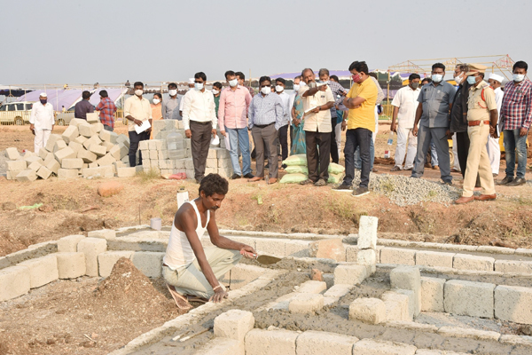 ప్రజాశక్తి - గుంటూరు : పేదలందరికీ ఇళ్ల పథకంలో భాగంగా ఆదివారం పేరేచర్ల లేఅవుట్లో జరిగే ఇళ్ల పట్టాల పంపిణీ కార్యక్రమం ఏర్పాట్లును జిల్లా కలెక్టర్ ఐ.శామ్యూల్ ఆనంద్ కుమార్ పరిశీలించారు. ఈ కార్యక్రమంలో రాష్ట్ర గృహ నిర్మాణ శాఖ మంత్రి చెరుకువాడ శ్రీరంగనాథ రాజు పాల్గొంటున్నందున అందుకు తగ్గ ఏర్పాట్లను పకడ్బందీగా పూర్తి చేయాలని కలెక్టర్ అధికారుల్ని ఆదేశించారు. లబ్దిదారులు ఎక్కువ సంఖ్యలో వస్తున్నందున వారికి కావలసిన సదుపాయాలన్ని సమకూర్చాలన్నారు. లే అవుట్లోని అన్ని రహదారుల వద్ద ప్లాట్ల సంఖ్యను తెలుపుతూ సైన్ బోర్డులు ఏర్పాటు చేయాలన్నారు. పట్టాల పంపిణీకి వార్డుల వారీగా కౌంటర్లు ఏర్పాటు చేయాలన్నారు. ఈ సందర్భంగా స్టేజీ నిర్మాణం, మోడల్ హౌస్ నమూనా, శిలాఫలకాన్ని పరిశీలిం చారు. కార్యక్రమంలో జెసి కె.శ్రీధర్రెడ్డి, జిఎంసి కమిషనర్ చల్లా అనురాధ, డ్వామా పిడి శ్రీనివాస రెడ్డి, పంచాయతీ రాజ్ ఎస్ఇ నతానియేల్, ఆర్డిఒ భాస్కర్రెడ్డి పాల్గొన్నారు.