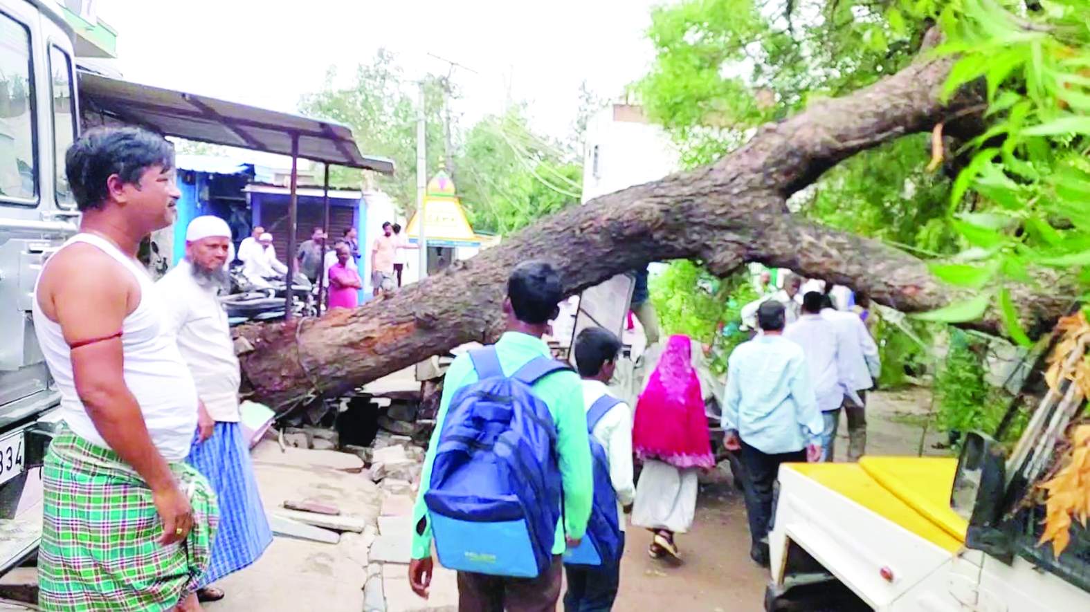 ఆదోని పట్టణంలోని వెంకన్న బావి ప్రాంతంలో భారీ వృక్షం నేలకొరిగింది. నిత్యం ప్రజలు తిరిగే ప్రాంతమైనప్పటికీ ప్రమాద సమయంలో ఎవరూ లేకపోవడంతో పెను ప్రమాదం తప్పడంతో ఊపిరి పీల్చుకున్నారు. ఆయా ప్రాంతాల ప్రజలకు ప్రధాన రోడ్డు కావడంతో రాకపోకలకు అంతరాయం ఏర్పడింది. అధికారులు స్పందించి భారీ వృక్షాన్ని తొలగించాలని ప్రజలు శుక్రవారం కోరారు.