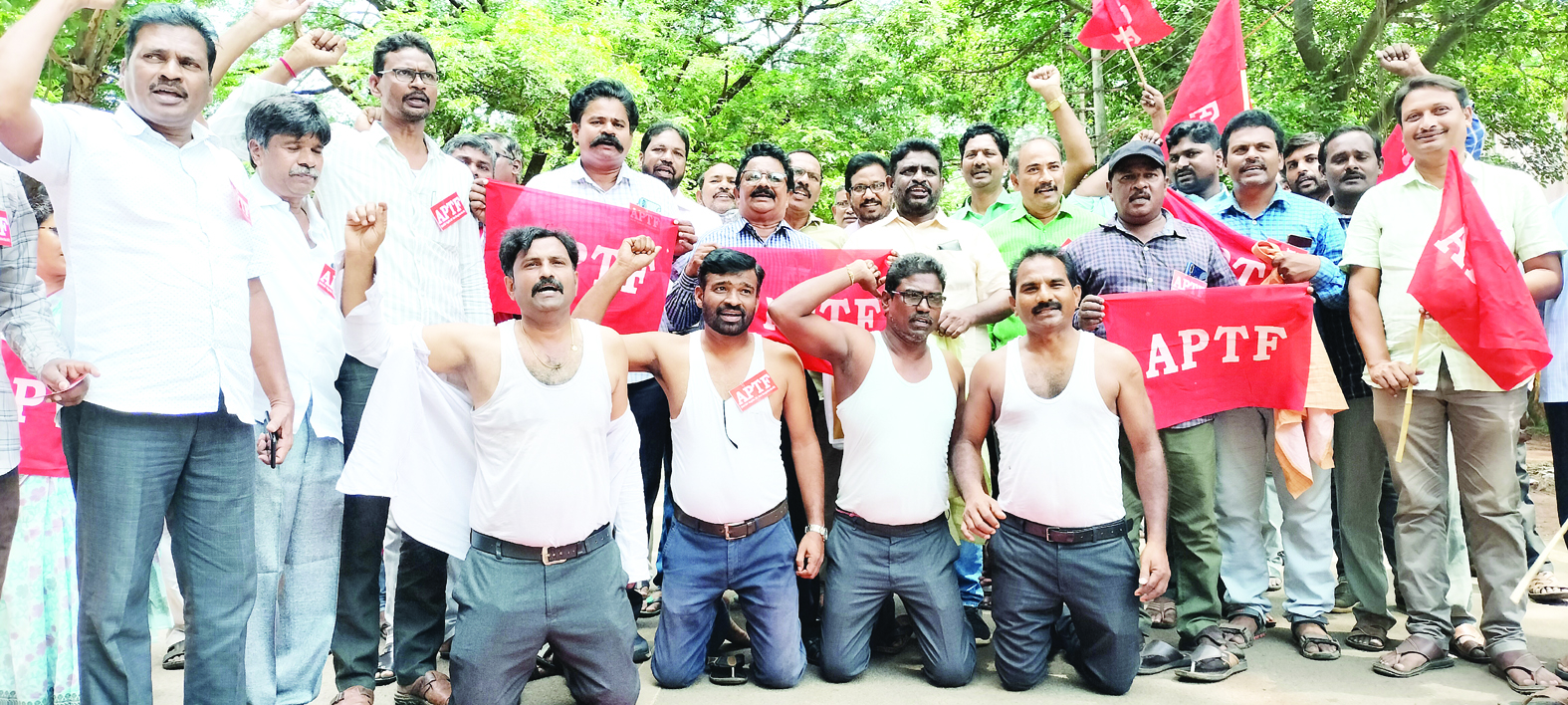 జిపిఎస్, సిపిఎస్లు రద్దు చేసి పాత పెన్షన్ విధానం (ఒపిఎస్) అమలు చేయాలని ఎపిటిఎఫ్ రాష్ట్ర కార్యదర్శి సాల్మన్ రాజు రాష్ట్ర ప్రభుత్వాన్ని డిమాండ్ చేశారు. శనివారం స్థానిక కలెక్టరేట్ వద్ద ఉపాధ్యాయులు వివిధ సమస్యలపై అర్ధనగంగా మోకాళ్లపై వినూత్న నిరసన తెలిపారు అనంతరం ధర్నా నిర్వహించారు. ఈ కార్యక్రమానికి ప్రత్యేక ఆహ్వానితులుగా విచ్చేసిన సాల్మన్రాజు మాట్లాడుతూ సిపిఎస్ను, కొత్తగా ప్రవేశపెట్టదల్చిన జిపిఎస్ను రద్దు చేయాలని, ప్రభుత్వ ప్రిన్సిపల్ సెక్రెటరీ ప్రవీణ్ ప్రకాష్ తన వైఖరి మార్చుకోవాలని, ఉపాధ్యాయుల పట్ల కక్షపూరితంగా వ్యవహరించొద్దని కోరారు. ఎపిటిఎఫ్ జిల్లా అధ్యక్షులు రెడ్డిదొర మాట్లాడుతూ జిఒ 117ను రద్దు చేయాలని, ఈ జిఒ వల్ల విద్యారంగంలో జరిగిన నష్టాన్ని వెంటనే పూరించాలని, 11వ పిఆర్సి ఎరియర్లను ఒకేసారి ఏక మొత్తంలో చెల్లించాలని కోరారు. జిల్లా ప్రధాన కార్యదర్శి షేక్.రంగావలి మాట్లాడుతూ ప్లస్2 తరగతులు బోధిస్తున్న ఉపాధ్యాయులకు పిజిటి, జూనియర్ లెక్చరర్ హోదా కల్పించాలని, వారికి పిజిటి స్కేల్ వర్తింపజేయాలని, మున్సిపల్ ఉపాధ్యాయుల సర్వీస్ రూల్స్ వెంటనే విడుదల చేయాలని, మున్సిపల్ ఉపాధ్యాయులకు ఉద్యోగోన్నతులు, బదిలీలు చేయాలని కోరారు. ఈ కార్యక్రమానికి ఐఎఫ్టియు ఉమ్మడి పశ్చిమ జిల్లా ప్రధాన కార్యదర్శి బద్దా వెంకట్రావు హాజరై సంఘీభావం తెలిపారు. ఈ కార్యక్రమంలో జిల్లా ఉపాధ్యక్షులు టి.రామారావు, కొండయ్య, షకీలాబేగం, రమాదేవి, రత్నం, గణేష్, బలరాం, నాగేశ్వరావు పాల్గొన్నారు.