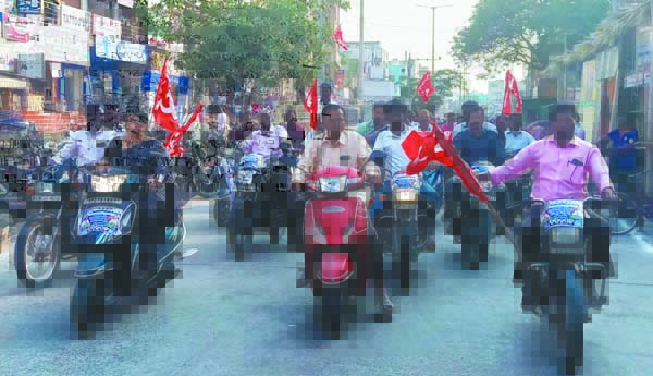 ప్రజాశక్తి-చీరాల: మేధావుల సభకు మేధావులనే పంపించుకుందాం అని, ప్రజా సమస్యలపై ప్రశ్నిస్తూ వాటి సమస్యల పరిష్కారం కోసం పోరాడే పిడిఎఫ్ ఎమ్మెల్సీ అభ్యర్థులు వెంకటేశ్వరరెడ్డి బాబిరెడ్డిలకు మొదటి ప్రాధాన్యత ఓటును వేసి గెలిపించుకోవాలని తద్వారా మాత్రమే ఉద్యోగ ఉపాధ్యాయ కార్మిక శ్రామిక వర్గాల సమస్యల పరిష్కారం జరుగుతాయని సిఐటియు రాష్ట్ర కార్యదర్శులు కె ఉమా మోహన్ కె ధనలక్ష్మి లు అన్నారు. పిడిఎఫ్ అభ్యర్థులను గెలిపించాలని కోరుతూ సిఐటియు, యుటిఎఫ్ ఆధ్వర్యంలో శనివారం పట్టణంలో నాయకులు బైకు ర్యాలీ నిర్వహించారు. ఈ ర్యాలీ స్థానిక మున్సిపల్ కార్యాలయం నుంచి ప్రారంభమై దర్బార్ రోడ్డు, పేరాల, ఐటిసి, మసీద్ సెంటర్ కూరగాయల మార్కెట్ రోడ్డు తహశీల్దారు కార్యాలయం, గడియార స్తంభం సెంటర్ మీదగా సాగింది. ఈ సందర్భంగా నాయకులు మాట్లాడుతూ ప్రజాస్వామ్యాన్ని ఖూనీ చేసే విధంగా వైసిపి దిగజారుడు రాజకీయం చేసి ఎమ్మెల్సీ ఎన్నికలలో దొంగ ఓట్ల చేర్పులకు పాల్పడిందని అన్నారు. నేడు ఉద్యోగులను, ఉపాధ్యాయులను వైసిపి ప్రభుత్వం వేధిస్తూ వారికి సకాలంలో జీతాలు కూడా చెల్లించకుండా అనేక ఒత్తిళ్లకు గురి చేస్తూ వారిని రోడ్డుపైకి తెచ్చిందని అన్నారు. ఉద్యోగ ఉపాధ్యాయులపై ప్రభుత్వ వేధింపులు మానుకోవాలని సిపిఎస్ రద్దు చేసి పాత పెన్షన్ విధానాన్ని పునరుద్ధరించాలని అన్నారు. గత మూడున్నర ఏళ్ల కాలం నుంచి రాష్ట్ర ప్రభుత్వం ఉద్యోగులపై వేధింపులు పాల్పడుతుందని ఆరోపించారు. సకాలంలో ఉద్యోగులకు జీతాలు అందించడం చేతకాని ఏకైక ప్రభుత్వం వైసీపీ ప్రభుత్వమేనని అన్నారు. ప్రభుత్వ తీరుపై ఎవరైనా నోరు మెదిపితే వారిపై అక్రమ అరెస్టులు, నిర్బంధ కాండలు చేయడం వంటి కార్యక్రమాలకు ప్రభుత్వం పాల్పడుతుందన్నారు. గతంలో ఎప్పుడు ఉద్యోగులు ఉపాధ్యాయులు పెద్దఎత్తున రోడ్లపైకి వచ్చి ఉద్యమాలు చేసిన సంఘటనలు లేవని అన్నారు. రిప్రజెంటేషన్ చర్చల ద్వారా సమస్యను పరిష్కరించుకున్నారని అన్నారు. జరగబోయే అసెంబ్లీ ఎన్నికలలో ఉద్యోగ ఉపాధ్యాయ సమస్యలపై ఎమ్మెల్యేలు మాట్లాడాలని అన్నారు.ఉద్యోగులను వేధిస్తున్న వైసీపీ ప్రభుత్వానికి నూకలు చెల్లిపోయాయని స్పష్టం చేశారు. జరగనున్న ఎమ్మెల్సీ ఎన్నికలలో ఉద్యోగ ఉపాధ్యాయ కార్మిక, శ్రామిక వర్గాల ప్రజా సమస్యలపై శాసనమండలిలో మాట్లాడే పిడిఎఫ్ ఎమ్మెల్సీ అభ్యర్థులకే మొదటి ప్రాధాన్యత ఓటు వేసి గెలిపించాలని కోరారు. సిఐటియు జిల్లాఅధ్యక్షులు సిహెచ్ మణిలాల్, నాయకులు ఎన్ బాబురావు, ఎం వసంతరావు, యుటిఎఫ్ జిల్లా అధ్యక్షులు జడ వినరు కుమార్, సహాధ్యక్షులు బిక్షాలు బాబు, కోశాధికారి వెంకటేశ్వర్ రెడ్డి, జిల్లా కార్యదర్శి జానీ బాషా, జనవిజ్ఞాన వేదిక రాష్ట్ర ఉపాధ్యక్షులు కుర్ర రామ