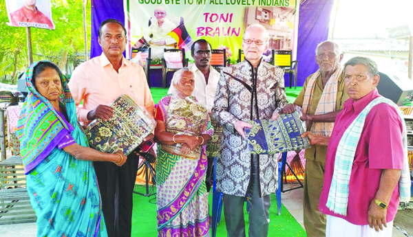 ప్రజాశక్తి-బాపట్ల: నిరుపేదలకు సహాయం అందించడంలో నిజమైన సంతృప్తి ఉందని జర్మనీ దేశస్థుడు టోనీ బ్రౌన్ అన్నారు. ఆదివారం బాపట్ల పట్టణంలో బేతనీ కాలనీలో కుష్టు వ్యాధిగ్రస్తులకు దుప్పట్లు పంపిణీ చేశారు. యాదవపాలెంలో విద్యార్థులకు గోడ గడియారాలను ఉచితంగా అందజేశారు. ఈ సందర్భంగా టోనీ మాట్లాడుతూ గత 20 యేళ్లుగా జర్మనీ నుంచి భారతదేశాన్ని సందర్శించడంలో భాగంగా ప్రధానంగా బాపట్లలో పేదవారికి అనేక సేవా కార్యక్రమాలతో పాటు ఉచిత వైద్య శిబిరాలు, అన్నదానం వంటి కార్యక్రమాలు నిర్వహిస్తున్నామన్నారు. ఈ సందర్భంగా విద్యార్థినీ విద్యార్థులచే సాంస్కృతిక కార్యక్రమాలు నిర్వహించారు. బాపట్ల ఎమ్మెల్యే కోన రఘుపతి టోనీ బ్రౌన్ను ఘనంగా సన్మానించారు. కార్యక్రమంలో మాజీ మున్సిపల్ చైర్మన్ తోటా మల్లేశ్వరి, బొంతగోర్ల వెంకట్రావు పాల్గొన్నారు.