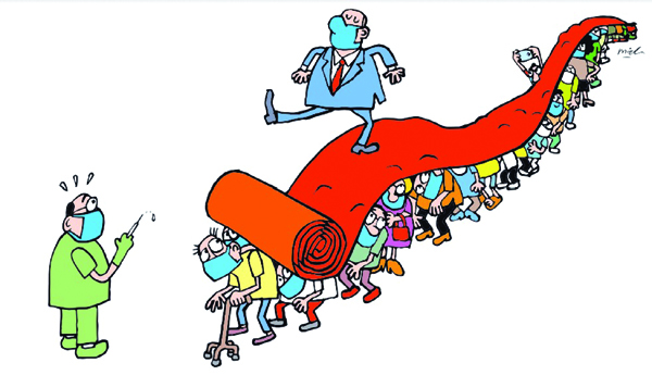 ఇప్పుడు చాలా మంది వ్యాక్సిన్ వివక్షత గురించి మాట్లాడుతున్నారు. అంటే ఇంతవరకూ ఉత్పత్తి అయిన వ్యాక్సిన్ లో సింహభాగం సంపన్న పెట్టుబడిదారీ దేశాలు తమ చేజిక్కించుకున్నాయి. మూడవ ప్రపంచ దేశాలకు దక్కినది చాలా తక్కువ. ఏప్రిల్ మాసాంతానికి అమెరికాలో 40 శాతం, యూరోపియన్ యూనియన్ దేశాలలో 20 శాతం జనాభా కనీసం ఒక డోసు వ్యాక్సిన్ ను పొందగలిగారు. అదే ఆఫ్రికా ఖండంలో కేవలం 2 శాతం మాత్రమే పొందగలిగారు. భారతదేశంలో పూర్తి వ్యాక్సినేషన్ జరిగింది ఇప్పటివరకూ 3 శాతానికి మించదు. సంపన్న దేశాలు రాబోయే కాలంలో ఉత్పత్తి కానున్న వ్యాక్సిన్లలో కూడా అత్యధిక భాగాన్ని తమ చేజిక్కించుకున్నారు. తమ దేశ ప్రజలందరికీ వ్యాక్సిన్ లను అందించగా పోను, అదనంగా నిల్వలను కూడా ఉంచుకునే విధంగా తయారీకి ముందస్తుగా ఆర్డర్లు ఇచ్చారు.