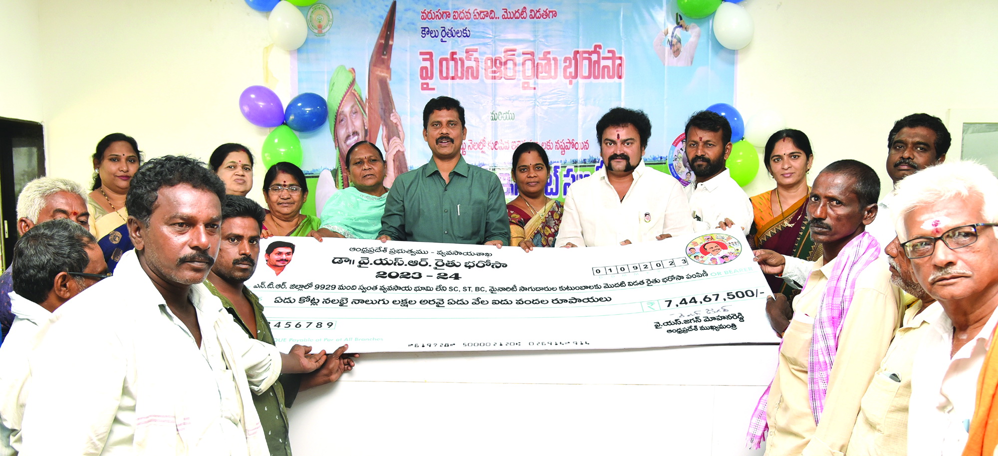 ప్రజాశక్తి - విజయవాడ, కలెక్టరేట్ : పేద రైతులకు అండగా నిలబడి పెట్టుబడి సాయం అందించేందుకు వైయస్సార్ రైతు భరోసా ప్రభుత్వం అమలు చేస్తోందని ఎన్టిఆర్, కృష్ణాజిల్లా కలెక్టర్లు ఎస్.డిల్లీరావు, పి.రాజాబాబు అన్నారు. రాష్ట్ర ముఖ్యమంత్రి వైఎస్ జగన్మోహన్రెడ్డి శుక్రవారం తాడేపల్లి క్యాంప్ కార్యాలయం నుండి వైఎస్సార్ రైతు భరోసా ద్వారా ఇన్పుట్ సబ్బిడీ రైతుల ఖాతాలలో జమ చేసే కార్యక్రమాన్ని వర్చువల్గా నిర్వహించారు. విజయవాడ నగరంలోని కలెక్టరేట్ వీడియోకాన్ఫరెన్స్ హాల్ నుండి జిల్లా కలెక్టర్ ఎస్ డిల్లీరావు, వివిధ కార్ఫోరేషన్ చైర్మన్లు, అధికారులతో వీక్షించిన అనంతరం జిల్లాకు చెందిన రైతులకు వైఎస్సార్ రైతు భరోసా, పెట్టుబడి రాయతీ చెక్కులను అందజేశారు. మచిలీపట్నం కలెక్టరేట్ నుండి జిల్లా కలెక్టర్ రాజాబాబు తదితరులు పాల్గొన్నారు. ఈ కార్యక్రమాల్లో ఎన్టిఆర్ జిల్లాలో వైఎస్సార్ రైతు భరోసా ద్వారా ఐదో ఏడాది మొదటి విడతలో 9,929 మంది రైతులకు రూ.7 కోట్ల 44 లక్షల 67 వేల 500 ఆర్థిక సాయం అందజేశారు. జూలై, ఆగస్టుల్లో కురిసిన అధిక వర్షాలలో పంట నష్టపోయిన 65 మంది రైతులకు రూ 3 లక్షల 32 వేల 550 పెట్టుబడి రాయితీ ఖాతాలలో జమ చేశారు. కృష్ణాజిల్లాలో 5వ ఏడాది మొదటి విడతగా 7,462 మంది భూమిలేని ఎస్సీ, ఎస్టీ, బీసీ, మైనారిటీ కౌలు రైతులు, దేవాదాయ భూములు సాగు చేసుకుంటున్న 139 మంది కౌలు రైతులు మొత్తం 7,601 మంది రైతులకు 7,500 చొప్పున పెట్టుబడి సాయంగా మొత్తం రూ.5.70 కోట్లు, ఈ ఏడాది ఖరీఫ్లో మే నుండి ఆగస్టు వరకు కురిసిన భారీ వర్షాలు, వరదలకు ఉద్యాన పంటలు దెబ్బతిన్న 211 మంది రైతులకు రూ.21.61 లక్షలు పంపిణీ చేశారు. ఈ సందర్భంగా కలెక్టర్లు మాట్లాడుతూ రైతుల ప్రయోజనాలను దృష్టిలో పెట్టుకుని 2019 అక్టోబర్ 15 నుండి ఈ పథకం అమలు చేస్తోందన్నారు. విజయవాడలో జరిగిన కార్యక్రమంలో డిప్యూటీ మేయర్ అవుతూ శ్రీ శైలజారెడ్డి, కార్పొరేషన్ చైర్మన్లు టి. శ్రీకాంత్, మనోజ్కోఠారి, జమలపూర్ణమ్మ, గీతాంజలిదేవి, లిడ్ క్యాప్ డైరెక్టర్ ఝన్సీరాణి, మహిళా ఫైనాన్స్ కార్పోరేషన్ డైరెక్టర్ విజితా సంపత్, వ్యవసాయ శాఖ జాయింట్ డైరెక్టర్ ఎస్ నాగమణెమ్మ, జిల్లా ఉద్యాన శాఖ అధికారి కె. బాలాజీ కుమార్, జిల్లాకు చెందిన వ్యవసాయ అధికారులు యం.రత్నశ్రీ, యం. సప్న, యు. ఊర్మిళ, ఏవివి అనిత భాను పాల్గొన్నారు. అలాగే మచిలీపట్నంలో జరిగిన కార్యక్రమంలో జిల్లా వ్యవసాయ సలహా మండలి కమిటీ చైర్మన్ జన్ను రాఘవరావు, కమిటీ సభ్యులు శ్రీకాకుళపు నాగేశ్వరరావు, బందరు నియోజకవర్గ వ్యవసాయ సలహా కమిటీ చైర్మన్ చూడామణి రావు, వ్యవసాయాధికారులు మనోహరరావు, మణిధర్, ఉద్యాన శాఖ అధికారి చందు పాల్గొన్నారు.