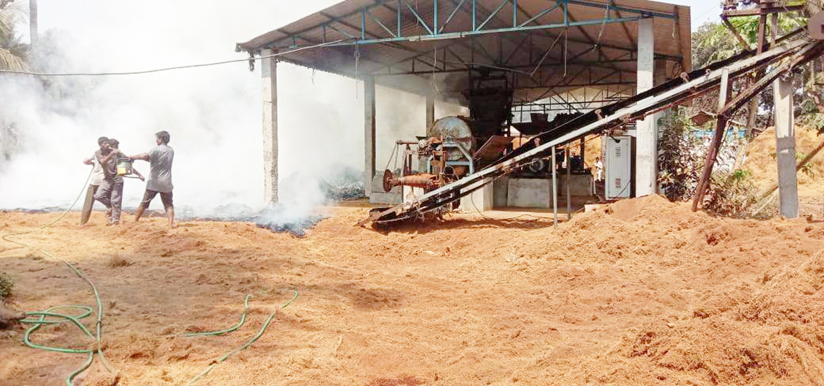 మండలంలోని విజయరాయి గాంధీనగర్లో కొబ్బరి పీచు పరిశ్రమలో సోమవారం షార్ట్ సర్క్యూట్ కారణంగా అగ్ని ప్రమాదం సంభవించింది. సకాలంలో సిబ్బంది, ఆగ్నిమాపక శాఖ స్పందించటంతో పెను ప్రమాదం తప్పింది. జిల్లా సహాయక అగ్నిమాపక ఫైర్ ఆఫీసర్ వి.రామకృష్ణారావు తెలిపిన వివరాల ప్రకారం... విజయరాయి గ్రామంలో గాంధీనగర్లో వై.తిరుమలరావు అనే వ్యక్తి సుబ్రహ్మణ్యేశ్వర క్వాయర్ ఇండిస్టీ నిర్వహిస్తున్నారు. సోమవారం యధావిధిగా సిబ్బంది పని చేస్తుండగా ఎలక్ట్రికల్ షార్ట్ సర్క్యూట్ కావటంతో మంటలు చెలరేగాయి. వెంటనే సిబ్బందితో మంటలు ఆర్పే ప్రయత్నం చేసి అగ్నిమాపక శాఖకు సమాచారం అందించారు. సమాచారం అందుకున్న అగ్నిమాపక శాఖ జిల్లా సహాయ ఫైర్ అధికారి వి.రామకృష్ణారావు ఏలూరు నుంచి తమ సిబ్బందితో ఫైర్ ఇంజన్తో సహా హుటాహుటిన సంఘటనా స్థలానికి చేరుకుని మంటలు అదుపులోకి తీసుకొచ్చారు. ఈ ప్రమాదంలో సుమారు రూ.50 వేల ఆస్తి నష్టం వాటిల్లిందని తెలిపారు. అగ్నిమాపక శాఖ సకాలంలో రావడం వల్ల సమారు రూ.11.50 లక్షల మేర ఆస్తిని కాలిపోకుండా కాపాడారు. సకాలంలో అగ్నిమాపక శాఖ స్పందించకపోతే భారీ నష్టాన్ని చవిచూసేవారిమని పరిశ్రమ యజమాని తిరుమలరావు తెలిపారు. ఈ ప్రమాదంలో ఎవరికీ గాయాలు గానీ ప్రాణ నష్టం సంభవించలేదు.