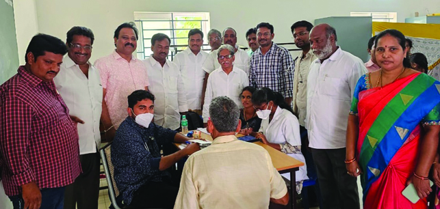 మండపేట పేదల ఆరోగ్య పరిరక్షణకు ప్రభుత్వం అధిక ప్రాధాన్యమిస్తుందని వైస్ ఎంపిపి పసుమర్తి నాగేశ్వరరావు, వైసిపి రాష్ట్ర నాయకులు దూలం వెంకన్నబాబు అన్నారు. ఏడిద గ్రామంలో జెడ్పి ఉన్నత పాఠశాల్లో ఏర్పాటు చేసిన జగనన్న ఆరోగ్య సురక్ష శిబిరాన్ని వారు ప్రారంభించారు. శిబిరంలో ప్రత్యేక వైద్య నిపుణులు 200 మందికి వైద్యసేవలు అందించారు. ఐసిడిఎస్ ఆధ్వర్యంలో గర్బిణులకు సామూహిక శీమంతాలు నిర్వహించి పౌష్టికాహార కిట్లు అందజేశారు. కార్యక్రమంలో పంచాయతీ మెంబర్ చిలుకూరి బుజ్జి, సొసైటీ ఛైర్మన్ రామిశెట్టి శ్రీహరిబాబు, మండల అభివృద్ధి అధికారి ఐదం రాజు, తహశీల్దార్ టిఆర్. రాజేశ్వరరావు, ఎంఇఒ నాయుడు రామచంద్రరావు, వైసిపి జిల్లా కార్యదర్శి వల్లూరి రామకృష్ణ, ఎఎంసి డైరెక్టర్ పలివెల సుధాకర తదితరులు పాల్గొన్నారు. కాట్రేనికోన జగనన్న ఆరోగ్య సురక్ష కార్యక్రమాన్ని ప్రజలు సద్వినియోగం చేసుకోవాలని పల్లంకుర్రు సర్పంచ్ నాతి అలివేణి అన్నారు. పల్లంకుర్రు పంచాయతీ పరిధిలోని సచివాలయం-3కు సంబంధించిన జగనన్న ఆరోగ్య సురక్ష కార్యక్రమాన్ని స్థానిక సర్పంచ్ అలివేణి ఆధ్వర్యంలో మంగళవారం నిర్వహించారు. కార్యక్రమం ఆవశ్యకతను ఆర్బికెల చైర్మన్ నాతి సత్యనారాయణ ప్రజలకు వివరించారు. అనంతం వైద్య శిబిరంలో డాక్టర్ బి.స్వాతి ఆధ్వర్యంలోని వైద్య బందం ప్రజలకు పరీక్షలు నిర్వహించారు. ఐసిడిఎస్ సూపర్వైజర్ల ఆధ్వర్యంలో పౌష్టి కాహారంతో కూడిన 60 రకిత వంటలను తయారు చేసి శిబిరంలో ప్రదర్శన కు ఉంచారు. పోషకాహార వంటకాలను అధికారులు ప్రజాప్రతినిధులు పరిశీలించారు. కార్యక్రమంలో వైసిపి మండల కన్వీనర్ నల్ల నరసింహమూర్తి, తహశీల్దార్ సత్యనారాయణ, ఎంపిడిఒ కె.కామేశ్వరరావు, డిటి ఝాన్సీ, డాక్టర్ బి. స్వాతి, ఎంపిటిసి సభుయలు జిటి, ఐసిడిఎస్ సూపర్వైజర్లు రమణి, జయవాని, పంచాయతీ కార్యదర్శి పోలిశెట్టి రామారావు, జగడం వెంకట రమణ, జానిపల్లి శ్రీను, అంగన్వాడీ, సచివాలయ సిబ్బంది వాలంటీర్లు తదితరులు పాల్గొన్నారు. ఆత్రేయపురం వాడపల్లి గ్రామంలో సర్పంచ్ పి.బాబురావు ఆధ్వర్యంలో జరిగిన మెగా వైద్య శిబిరం జరిగింది. ఈ కార్యక్రమంలో తహశీల్దార్ డివిఎన్.అనిల్ కుమార్, మండల పంచాయతీ విస్తరణ అధికారి శ్రీనివాస్ తదితరులు పాల్గొన్నారు. అమలాపురం రూరల్ పేరూరు కొంకాపల్లి 4 వ సచివాలయం పరిదిలో సర్పంచ్ దాసరి అరుణ అధ్యక్షతన జగనన్న అరోగ్య సురక్ష కార్యక్రమాన్ని నిర్వహించారు. కార్యక్రమంలో అమలాపురం ఎంపిపి కుడుపూడి భాగ్యలక్ష్మి, జెడ్పిటిసి సభ్యుడు పందిరి శ్రీహరి తదితరులు పాల్గొన్నారు. ఉప్పలగుప్తం నంగవరం సచివాలయంలో నంగవరం-సన్నవిల్లి గ్రామాల ప్రజలకు స్థానిక సర్పంచ్, డాక్టర్ వైఎస్ఆర్ హార్టికల్చర్ యూనివర్సిటీ బోర్డు సభ్యులు జిన