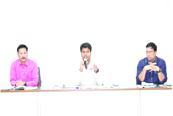 సమీక్షలో మాట్లాడుతున్న నగరపాలక కమిషనర్ మహేష్ కుమార్